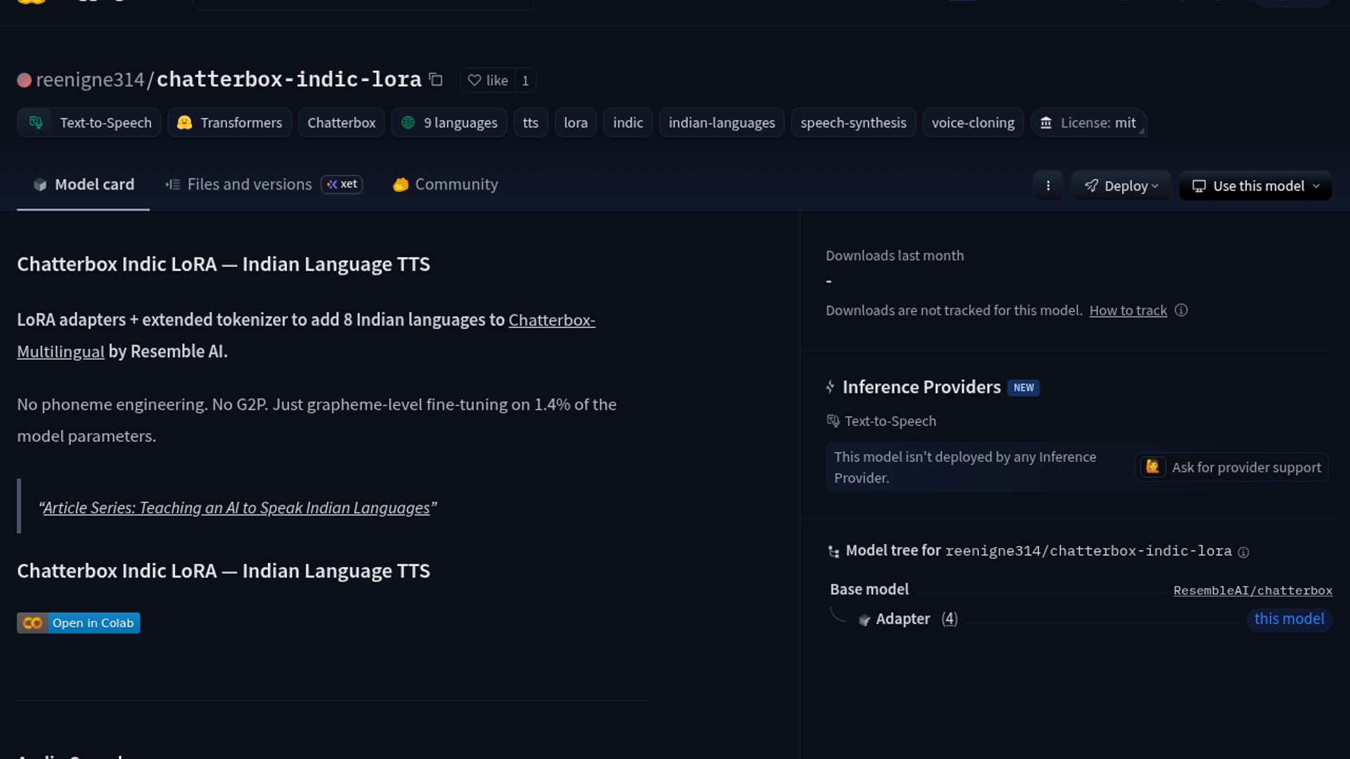 Chatterbox-Indic-LoRA adds eight Indian languages to TTS