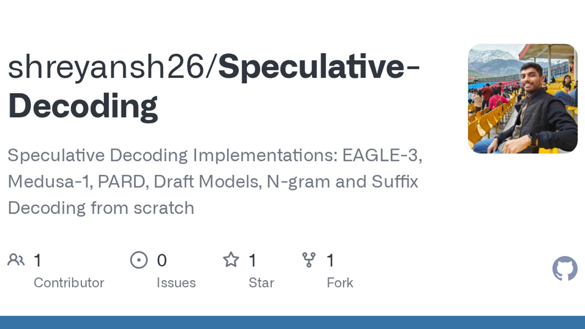 Strong repo, because it turns speculative decoding from a buzzword into a controlled systems experiment. The useful lesson is that acceptance rate alone is not the metric that matters; verifier cost, proposer cost, batching, and cache behavior decide throughput.