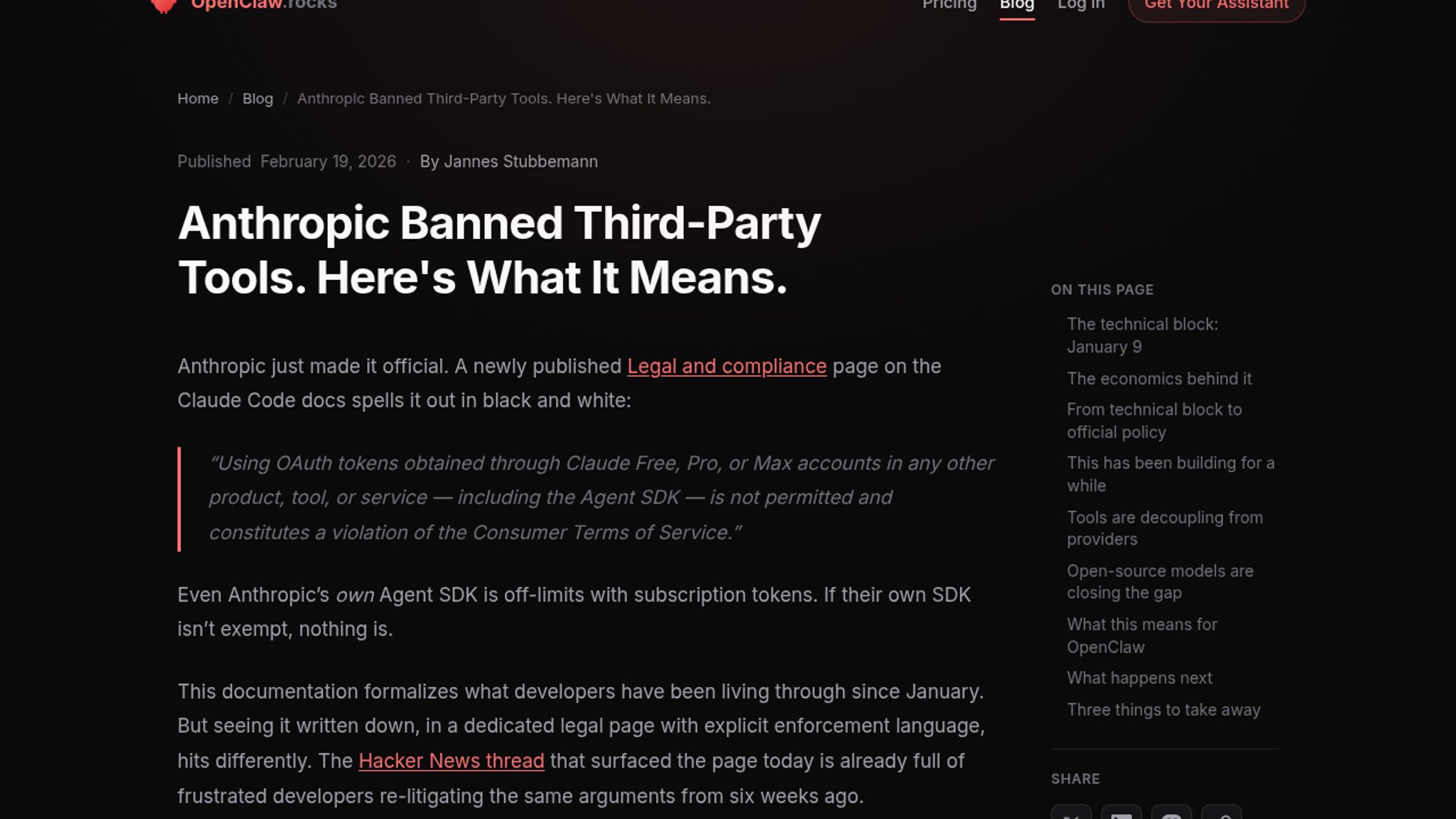 - –For AI tool builders, this is a reminder that unofficial auth paths are not durable product infrastructure, especially when model providers tighten ecosystem control.