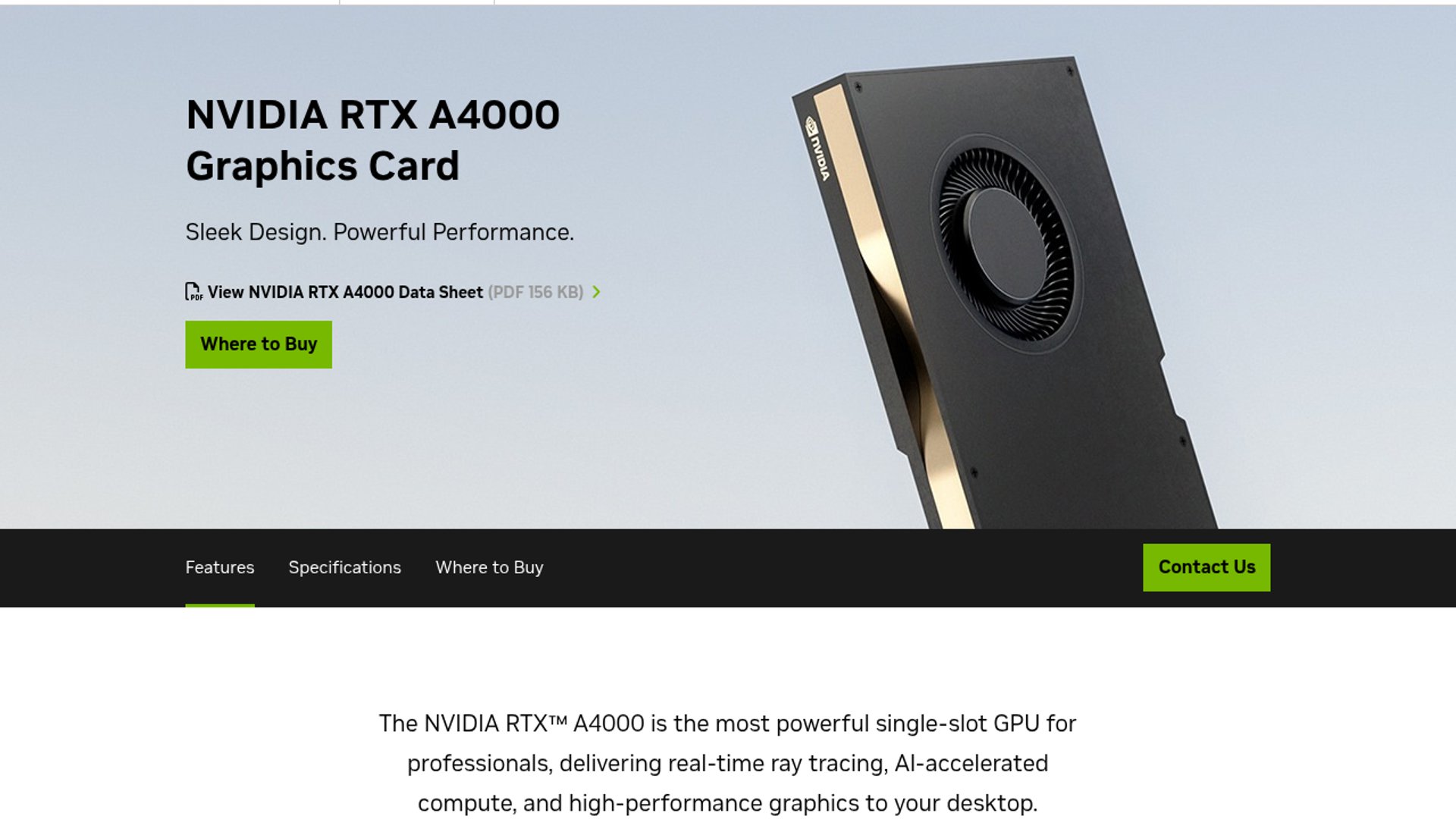 - –NVIDIA positions the RTX A4000 as a single-slot 16GB GDDR6 workstation GPU with 140W power draw, which makes it easier to drop into an older chassis than bulkier gaming cards
