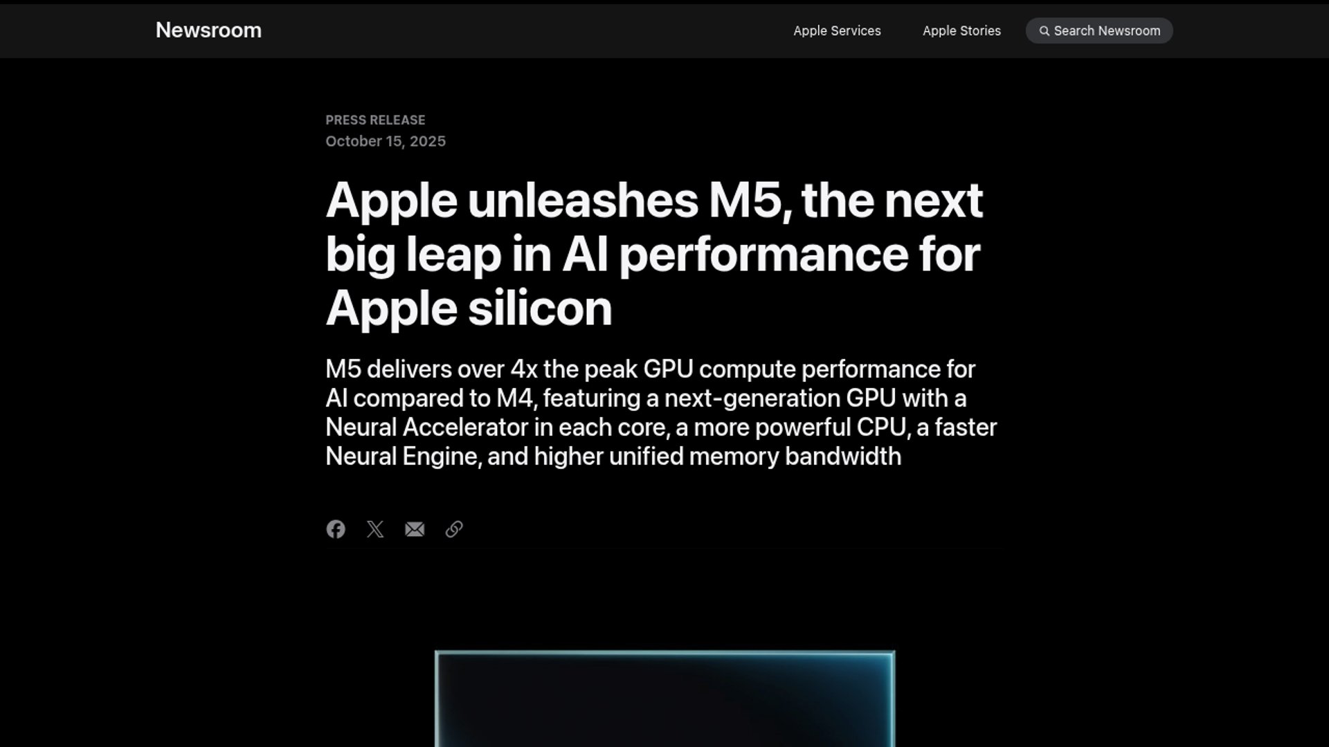 - –Apple’s official M5 announcement said unified memory bandwidth rose to 153GB/s, nearly 30 percent over M4, which is why LocalLLaMA users are extrapolating hard on what an Ultra-class version could mean