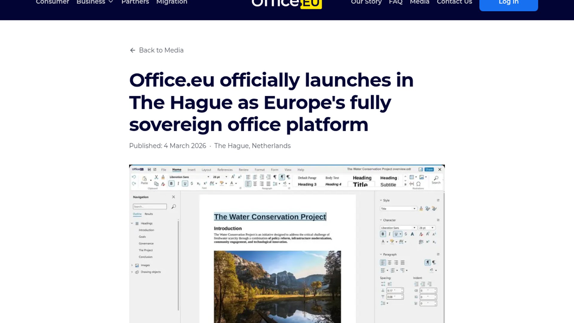 Office.eu launched March 4 in The Hague as a fully European-owned, open-source office suite built on Nextcloud Hub and Collabora Online, hosted entirely on EU infrastructure. It targets Microsoft 365 and Google Workspace users seeking GDPR compliance and immunity from the US CLOUD Act, with nearly 15,000 waitlist signups already.