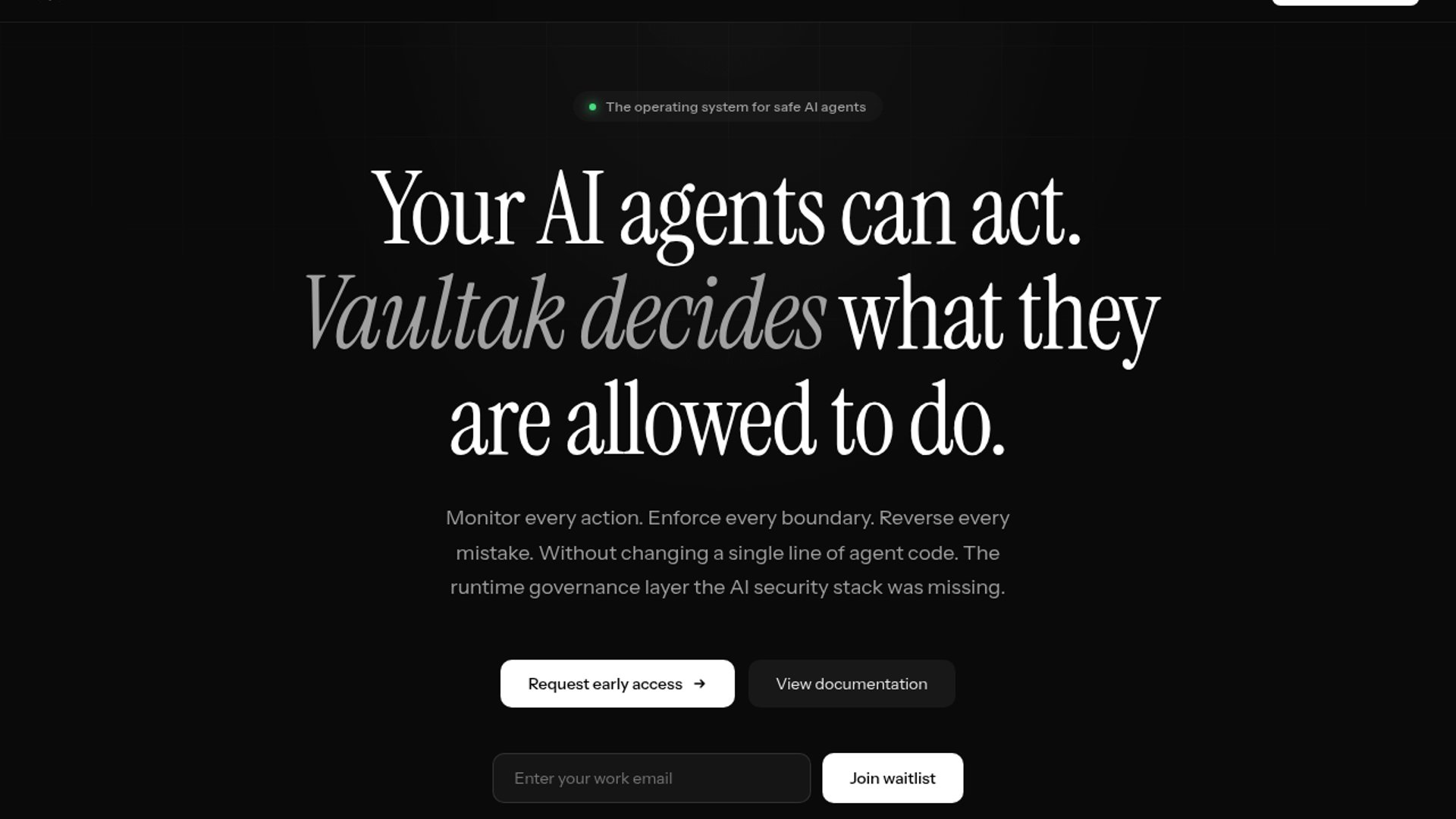 Vaultak scores, blocks, rolls back risky actions