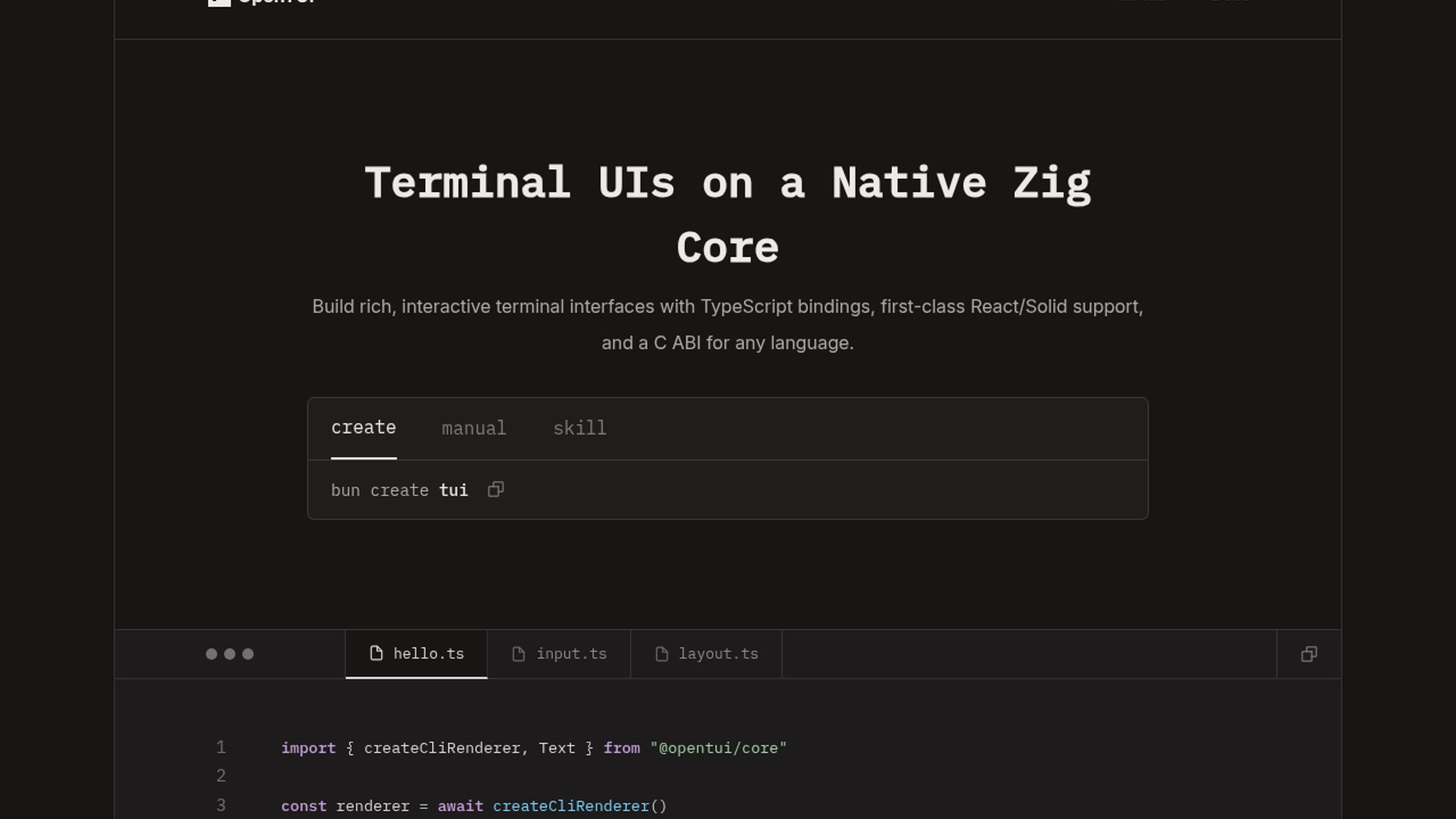 opentuiclidevtoolopen-sourcezigsolidjs