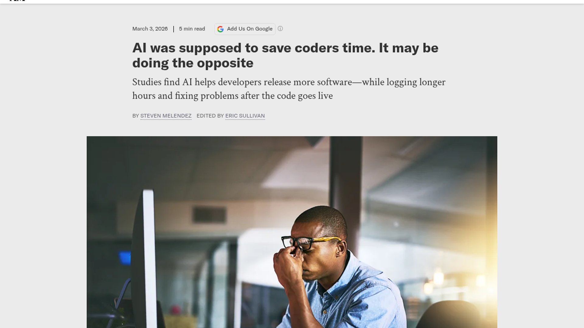 Scientific American pulls together fresh findings from UC Berkeley Haas, Google’s DORA team, Multitudes, and Anthropic to argue that AI coding tools are boosting output while also increasing rollback risk, out-of-hours work, and burnout pressure. The core takeaway for engineering teams is that AI speeds code generation, but it does not automatically make software work lighter or healthier.