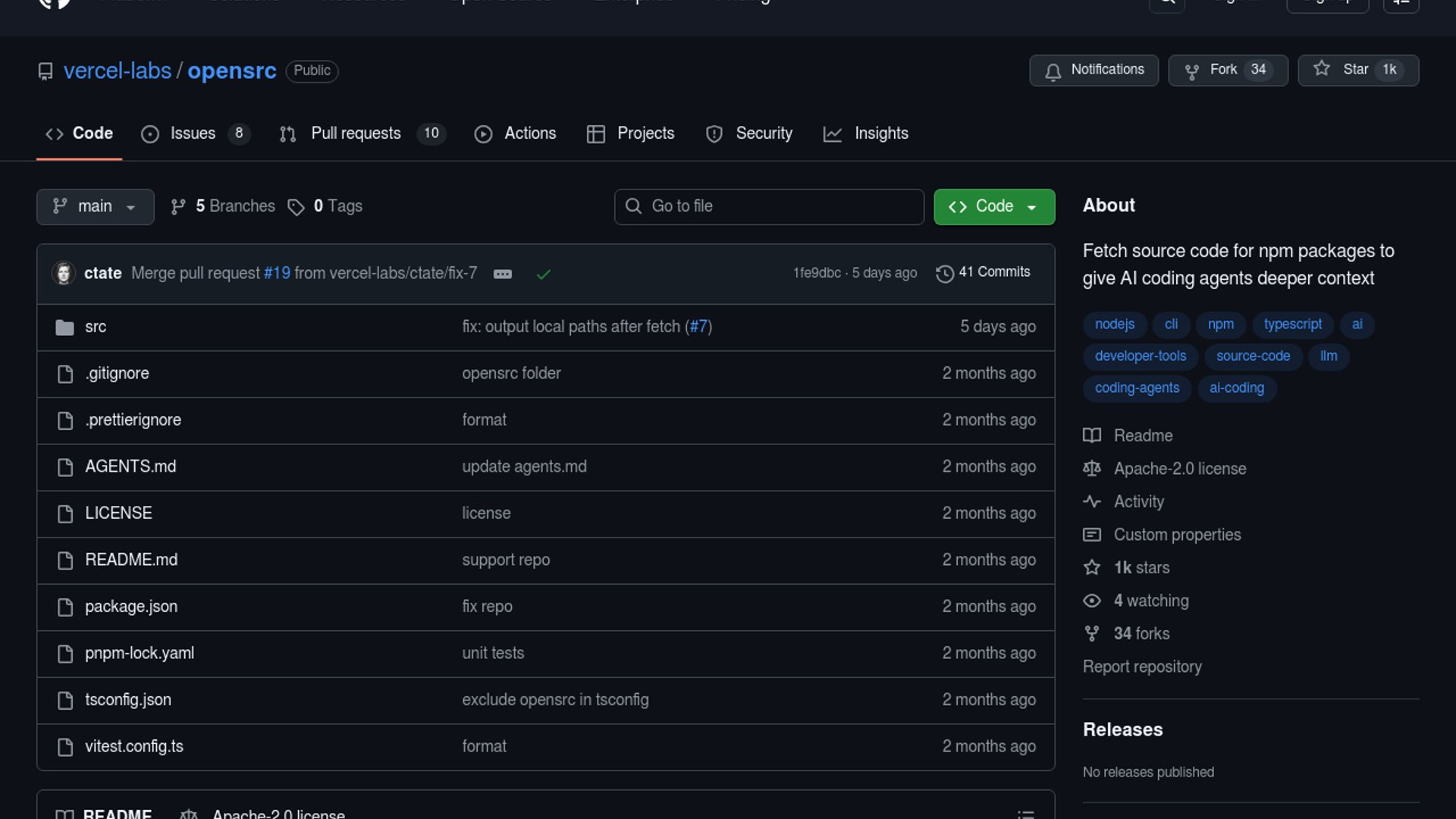 OpenSrc is Vercel Labs’ open-source CLI that pulls npm package and GitHub repository source directly into a local `opensrc/` folder so coding agents can reason over implementation details, not just types. It auto-detects installed versions from lockfiles and adds source-management commands (`list`, `remove`) for repeatable context workflows.