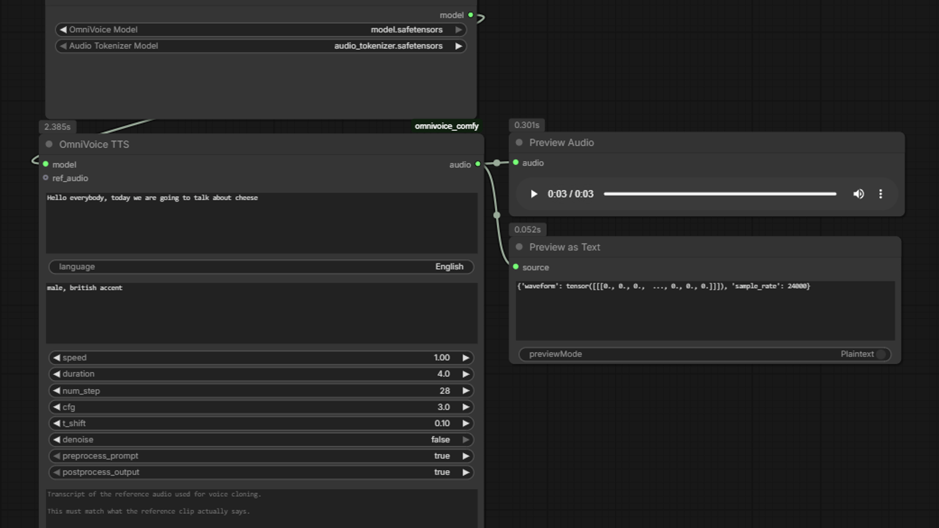 - –While the cloning process requires manual transcriptions of the seed audio, users are automating this by chaining the node with ComfyUI-Whisper.