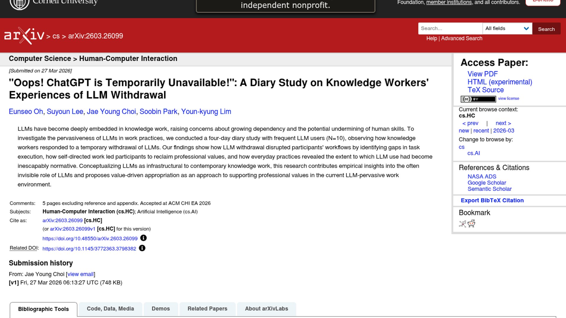 Researchers from KAIST conducted a four-day diary study with frequent AI users to observe the effects of LLM withdrawal, uncovering how deeply these tools have become infrastructural to modern knowledge work. The study, accepted at CHI 2026, reveals that while withdrawal causes significant workflow gaps and discomfort, it also forces professionals to reclaim professional values and agency that had been previously outsourced to the "black box" of AI.