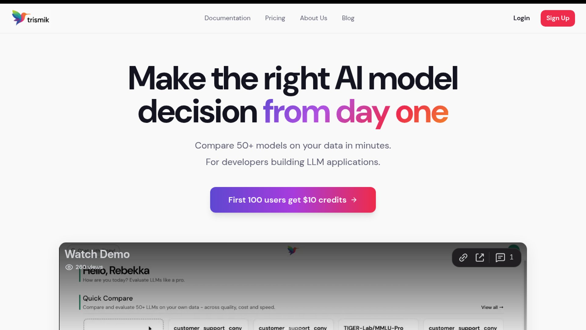 QuickCompare is a model decision workspace that enables AI teams to benchmark 50+ LLMs using their own custom data and prompts. By moving beyond generic leaderboards, the platform provides side-by-side metrics for quality, cost, and latency to ensure developers pick the optimal model for their specific production use case.