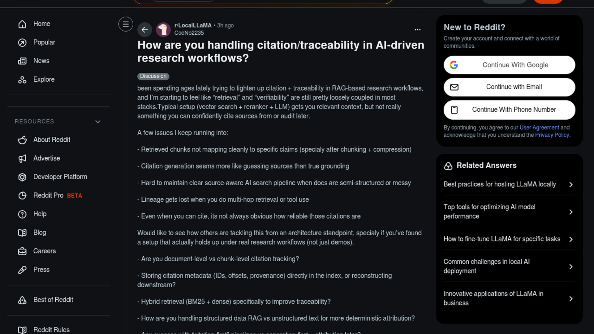 A LocalLLaMA discussion surfaces a production RAG pain point: retrieval stacks can find relevant context, but often fail to preserve claim-level provenance, source offsets, and audit trails through chunking, compression, reranking, and tool use.