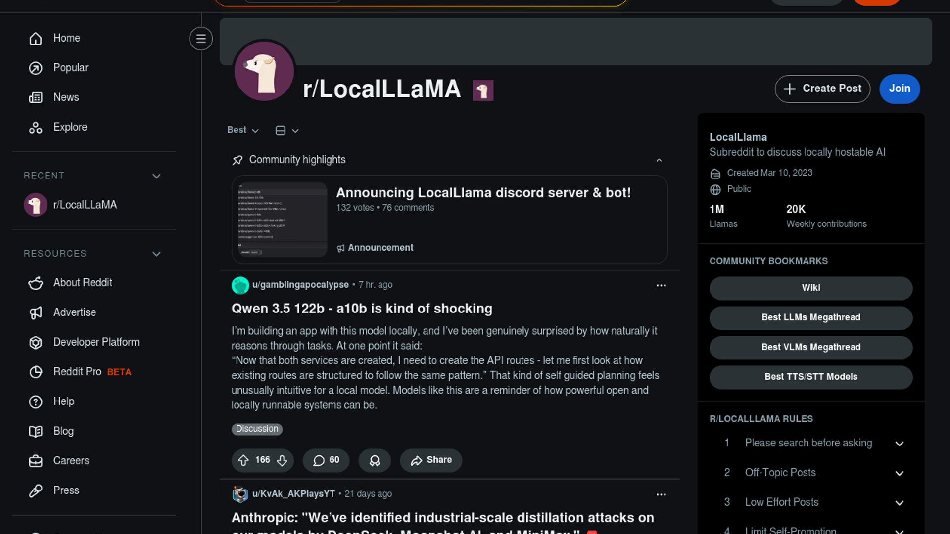 - –r/LocalLLaMA is a reliable signal for grassroots developer pain points — stateless agents keep surfacing as a top friction point
