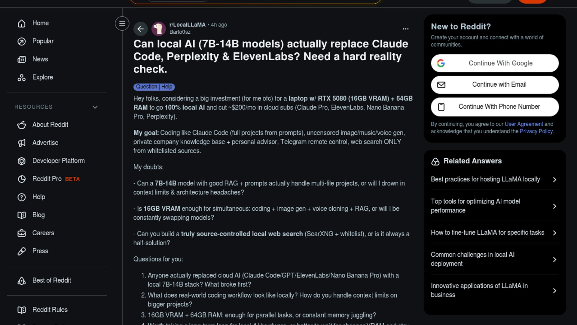 - –Local 7B-14B models currently struggle to match the massive context windows and multi-file reasoning capabilities of cloud solutions like Claude Code