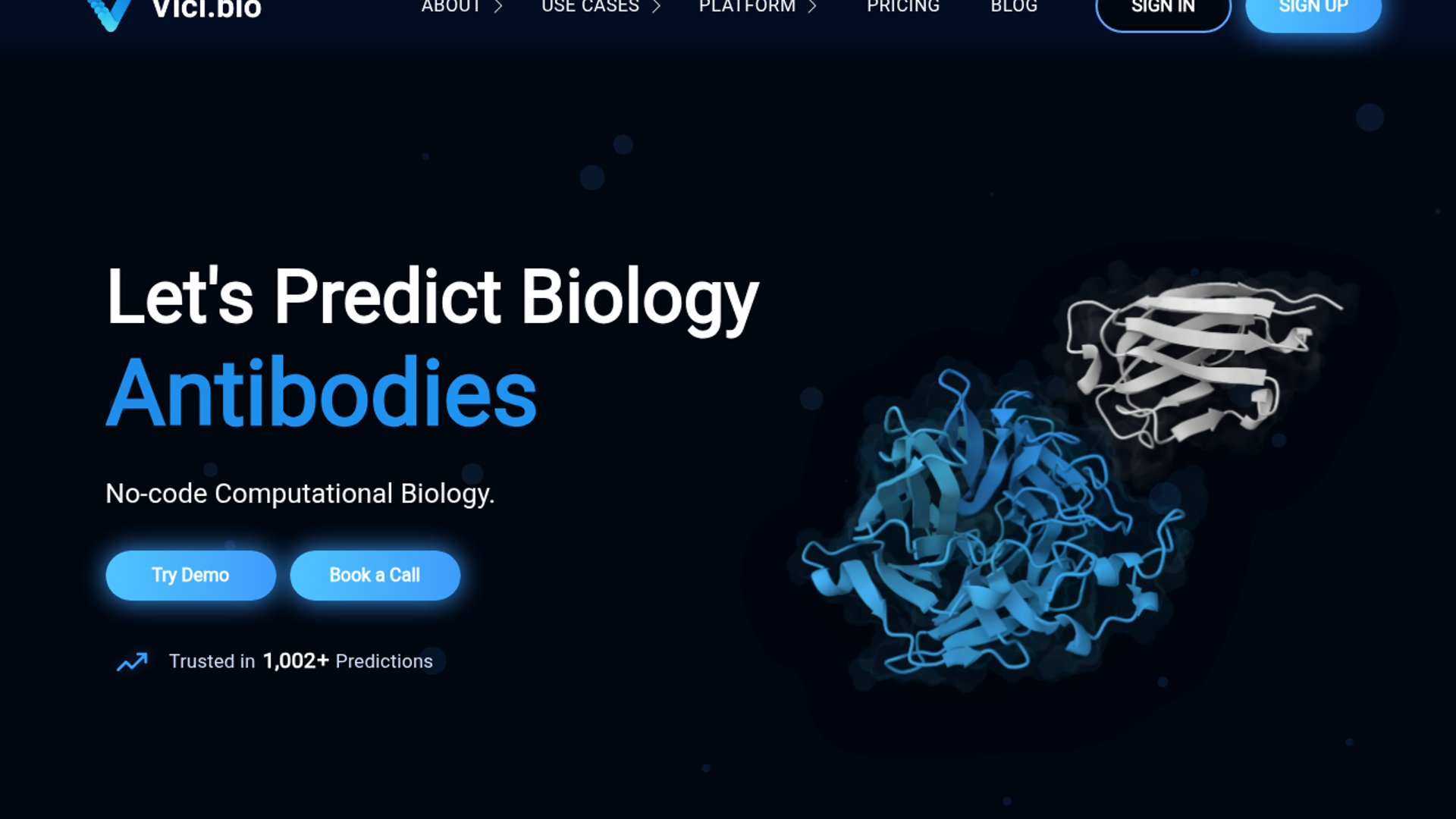 Vici.bio is a no-code computational biology platform aimed at making drug discovery and biomolecular design easier to start. It bundles browser-based workflows for structure prediction, docking evaluation, protein design, molecular conversion, and simulation, with the stated goal of helping scientists, students, and biotech teams move from sequence or structure to usable results faster and without wrestling with installs, GPUs, or scattered notebooks.