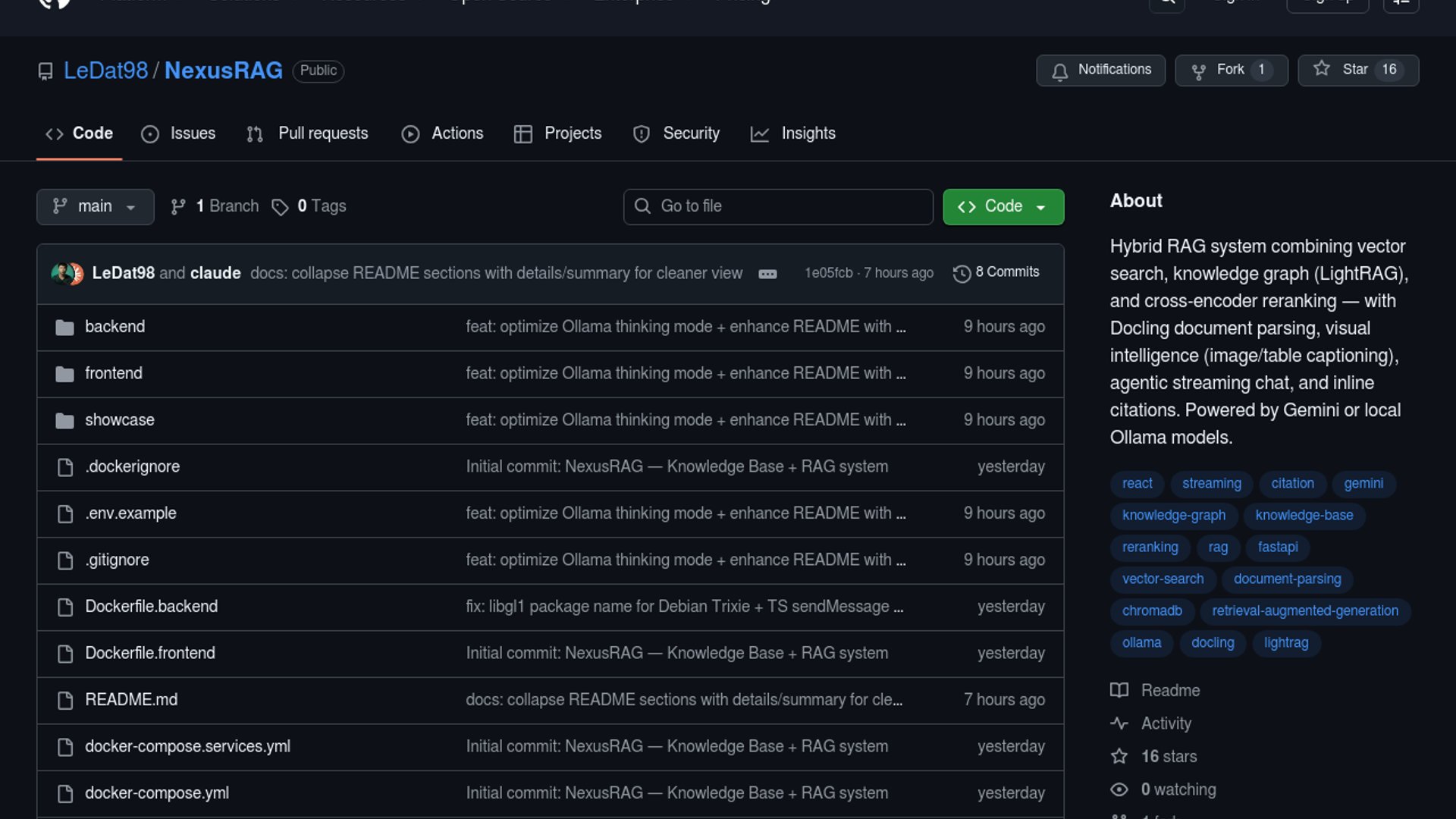 NexusRAG is a new open-source, self-hostable RAG platform that uses vision LLMs and Docling to caption images and summarize tables before embedding, so document queries actually surface chart data and tabular content. It supports both local Ollama and Gemini backends with a three-stage hybrid retrieval pipeline including vector search, a knowledge graph, and cross-encoder reranking.
