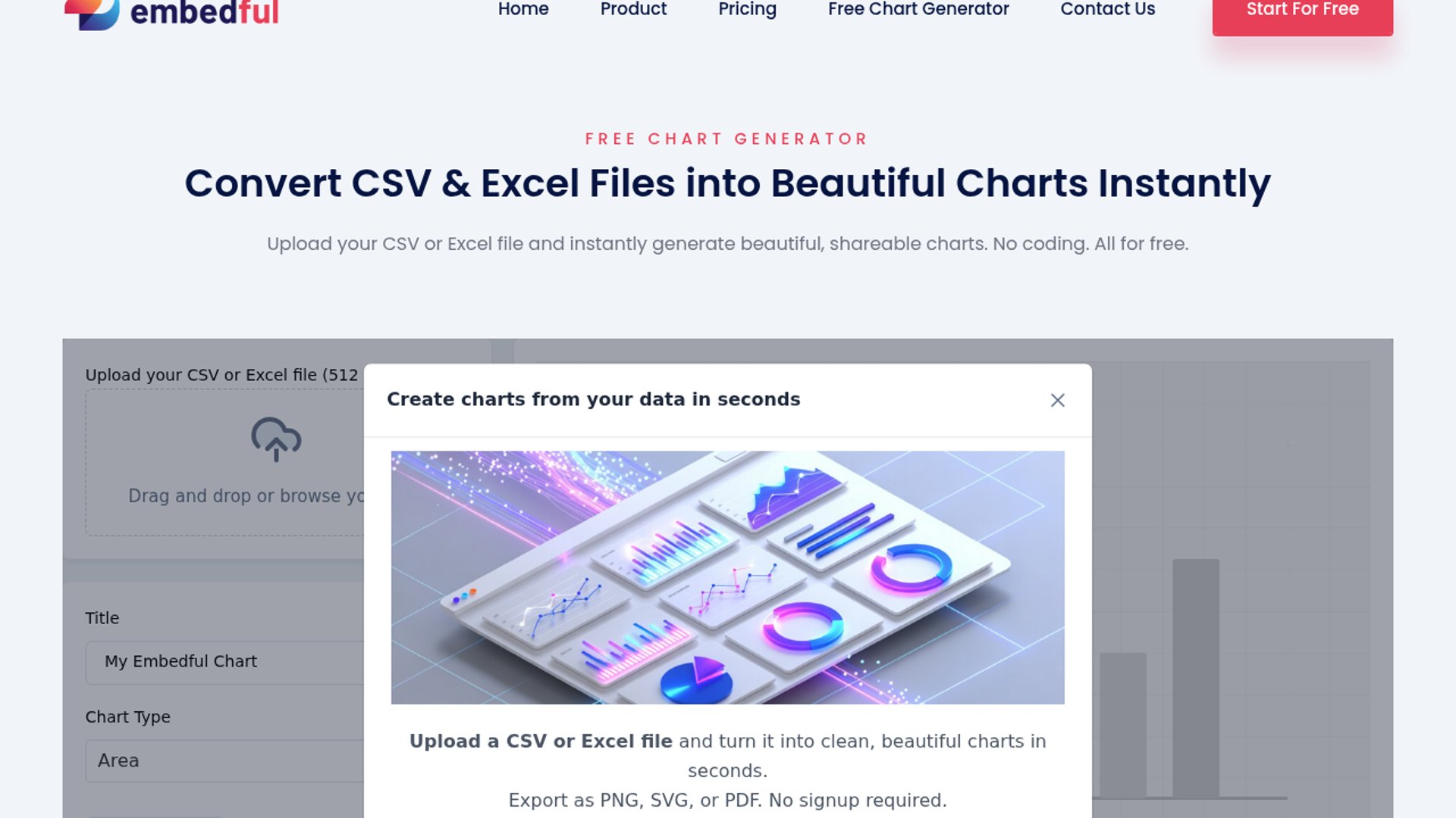 Embedful added a no-signup chart maker that turns CSV and Excel files into presentation-ready charts in seconds. It supports common chart types and exports to PNG, SVG, and PDF, positioning the tool as a fast on-ramp to the company’s broader embedded analytics platform.