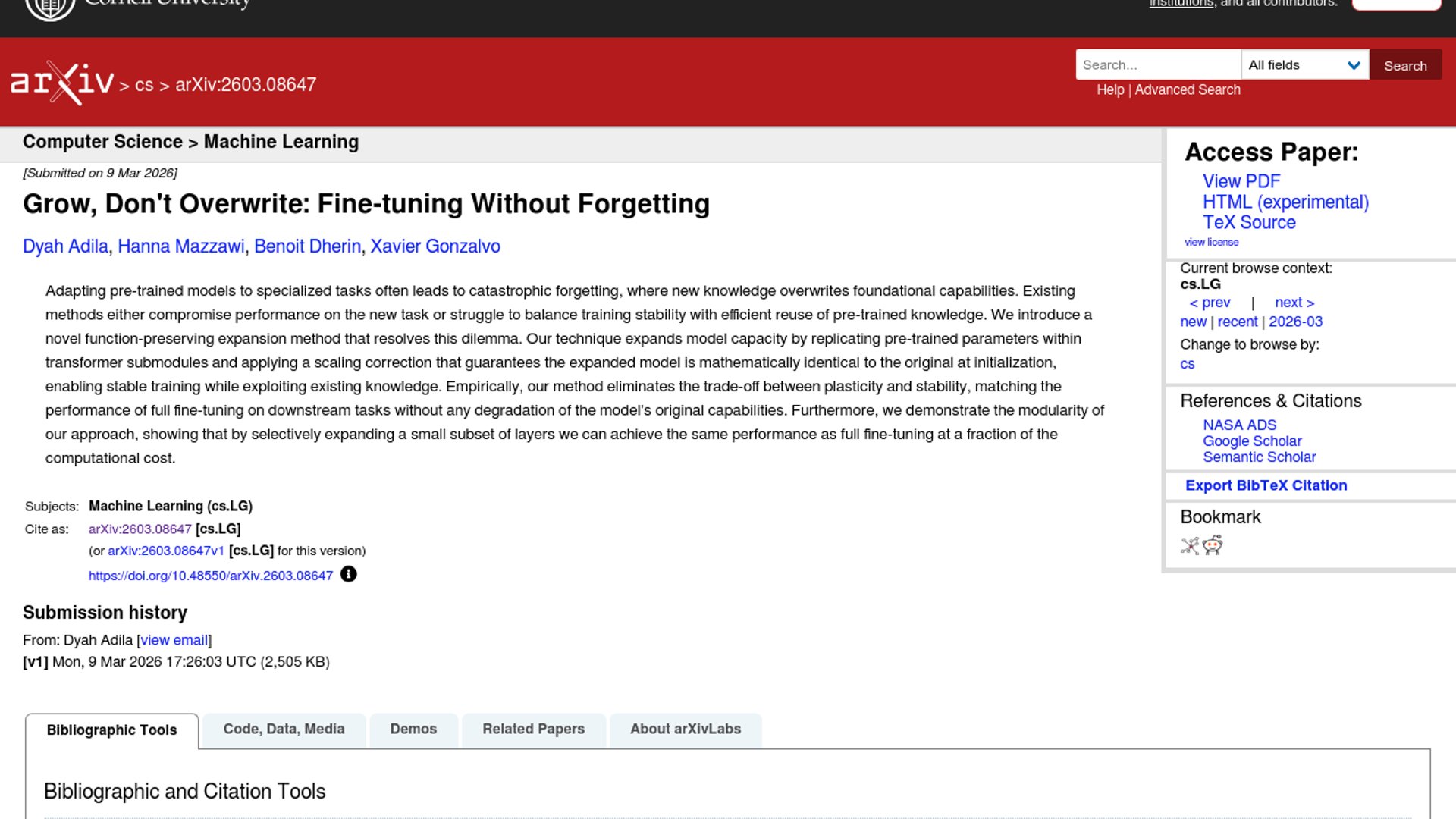 This paper proposes a function-preserving way to expand transformer MLP layers during fine-tuning by duplicating up-projection weights and compensating in the down-projection layer. On Gemma models, it reports downstream performance comparable to standard fine-tuning while preserving much more of the base model’s original capabilities.