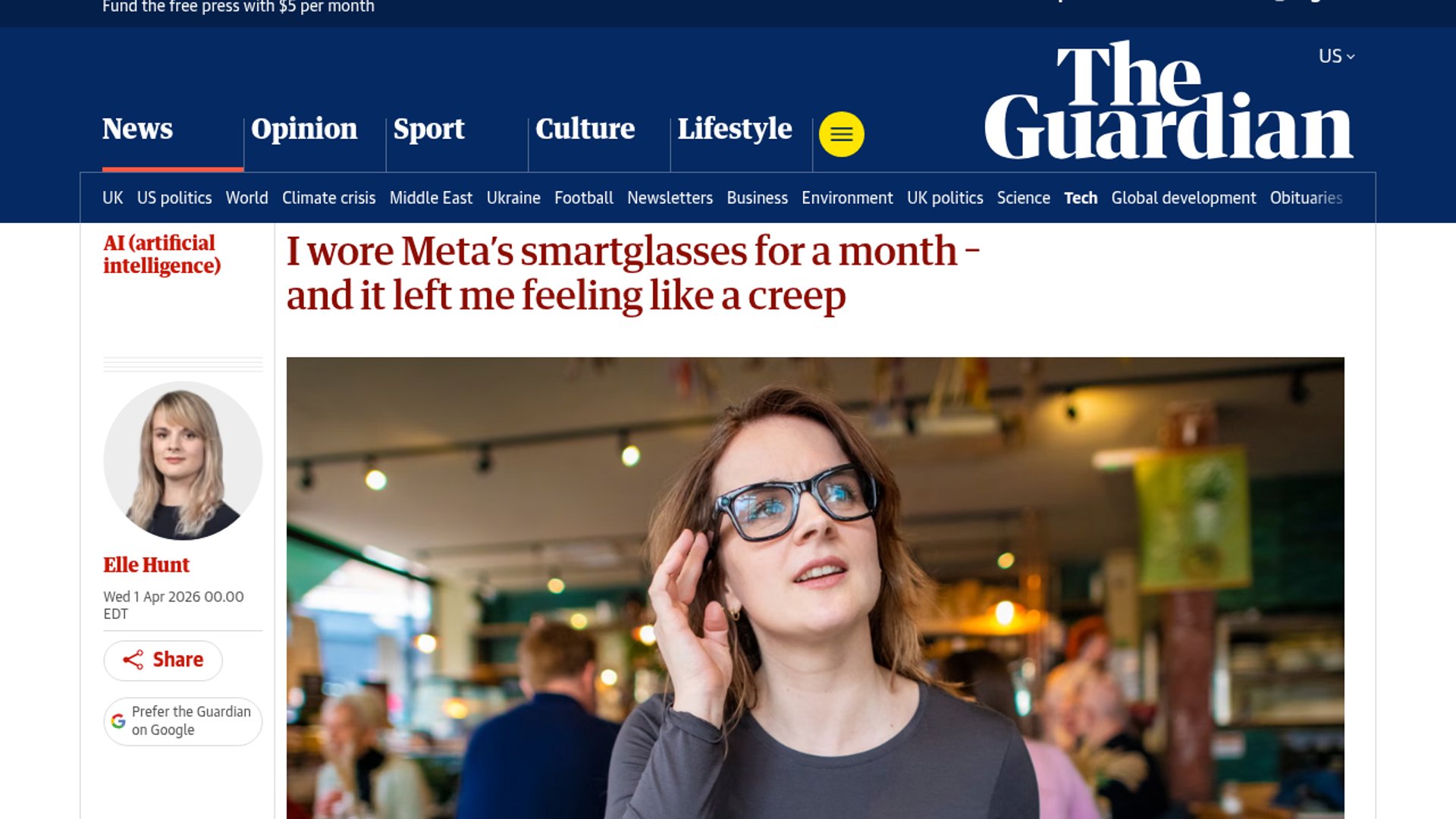 Elle Hunt spends a month with Meta’s Ray-Ban smart glasses and finds them novel but not yet compelling for everyday use. They can handle photos, audio, voice assistance, object identification, and translation, but the experience is often clunkier than reaching for a phone.