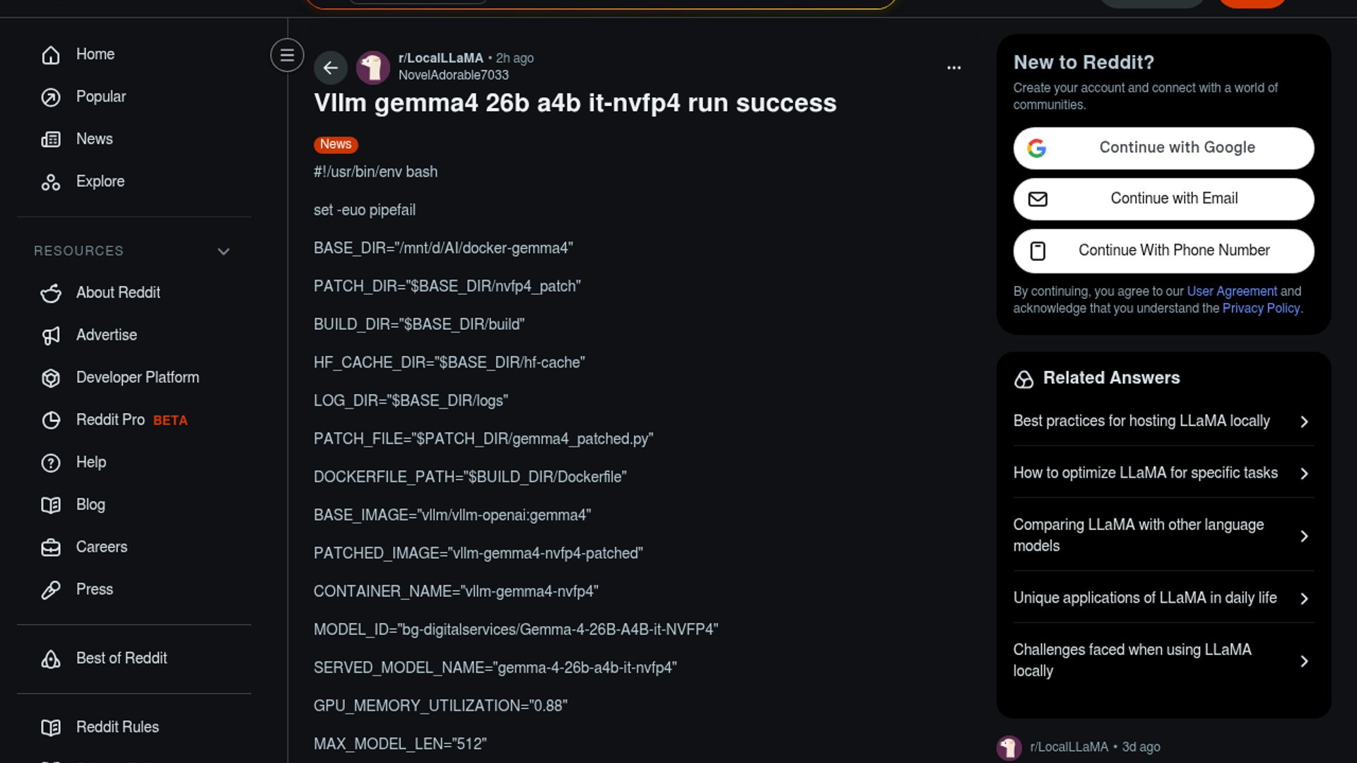Developers have successfully deployed the Gemma-4-26B-A4B-it-NVFP4 model on vLLM by applying a custom Python patch that resolves weight scale mapping issues for Mixture-of-Experts (MoE) layers. The implementation leverages the Marlin backend for optimized performance on NVIDIA Blackwell (SM 12.1) hardware, specifically utilizing NVFP4 quantization and FP8 KV cache for high-efficiency local serving. This community-driven fix provides a critical bridge for running Google's latest open-weights model on vLLM ahead of official architectural support in the main repository.