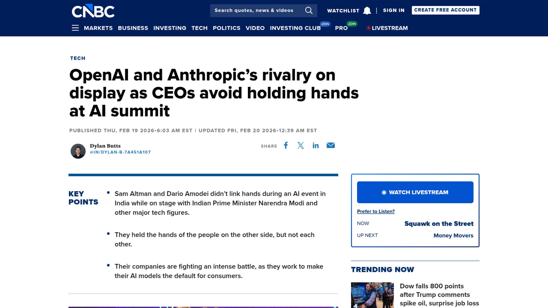 India’s government-backed AI Impact Summit in New Delhi gathered OpenAI, Anthropic, Google DeepMind, NVIDIA, Mistral, and other heavyweight players under a policy-heavy “AI for humanity” banner. CNBC’s coverage turns the Sam Altman–Dario Amodei photo-op snub into the clearest signal that global AI summits are now as much about competitive positioning and market theater as they are about governance.