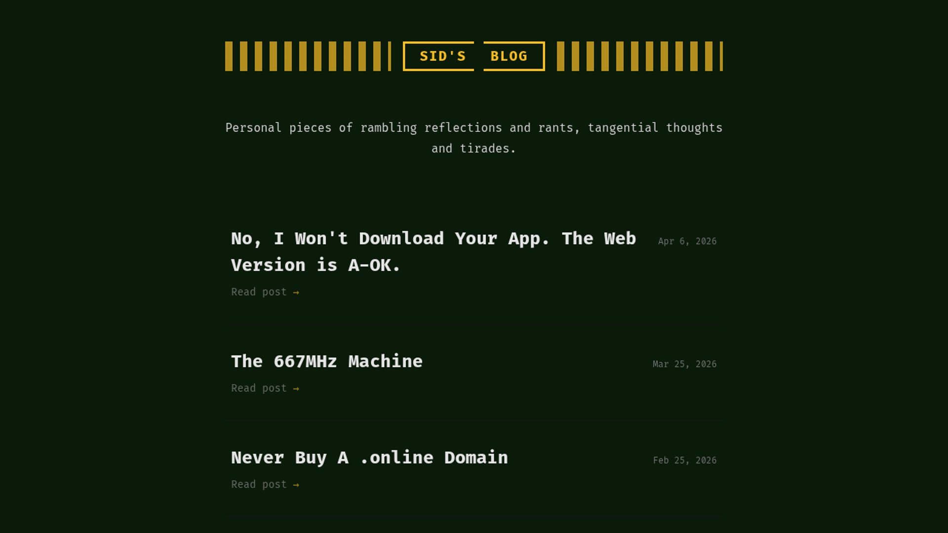 Sid argues most services should stay web-first because browsers give users more control, while app-only funnels add friction, telemetry, and dark patterns. The post says many native apps are thin wrappers around text and media, and that even good ones often lose on polish.