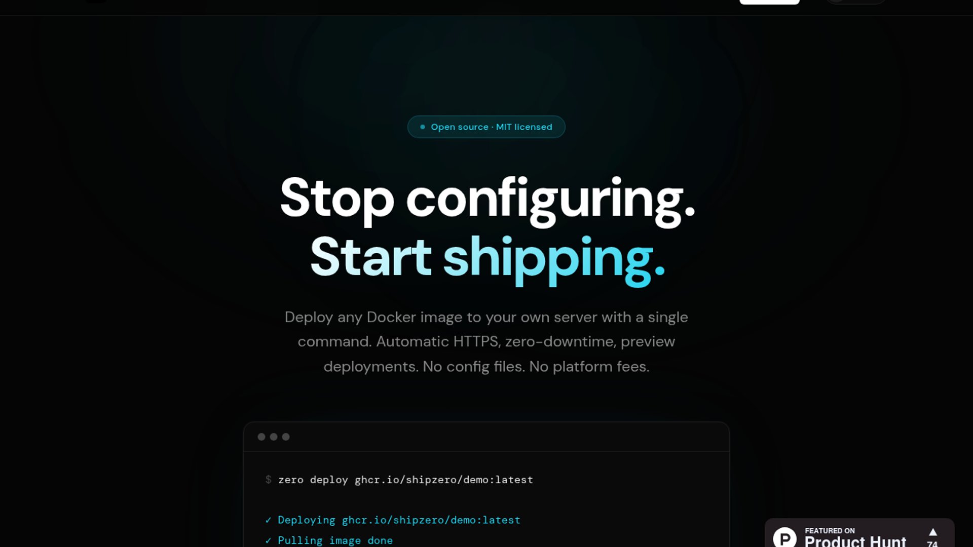zero is an open source CLI for deploying Docker images to your own Linux server with a single command. It automates HTTPS, health-checked zero-downtime deploys, preview environments, rollbacks, metrics, and webhook-triggered updates, aiming to remove the usual nginx, Certbot, and scripting overhead that makes self-hosting cumbersome.