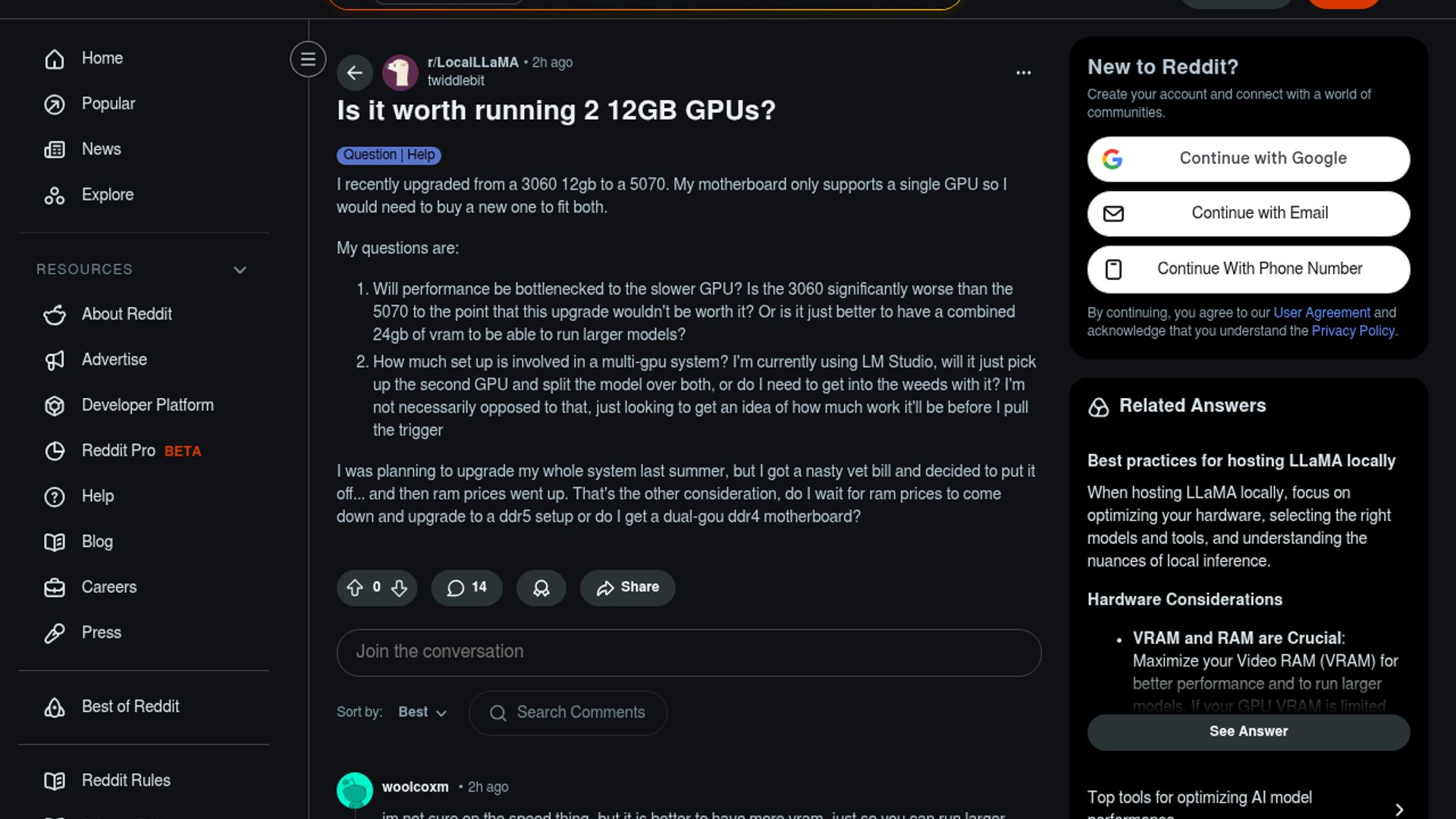 The Reddit post asks whether pairing an RTX 5070 with an RTX 3060 12GB is worth buying a new motherboard for local LLM work. The real question is whether LM Studio can use both cards cleanly enough to justify the extra hardware, or whether a single faster GPU and a bigger platform upgrade later makes more sense.