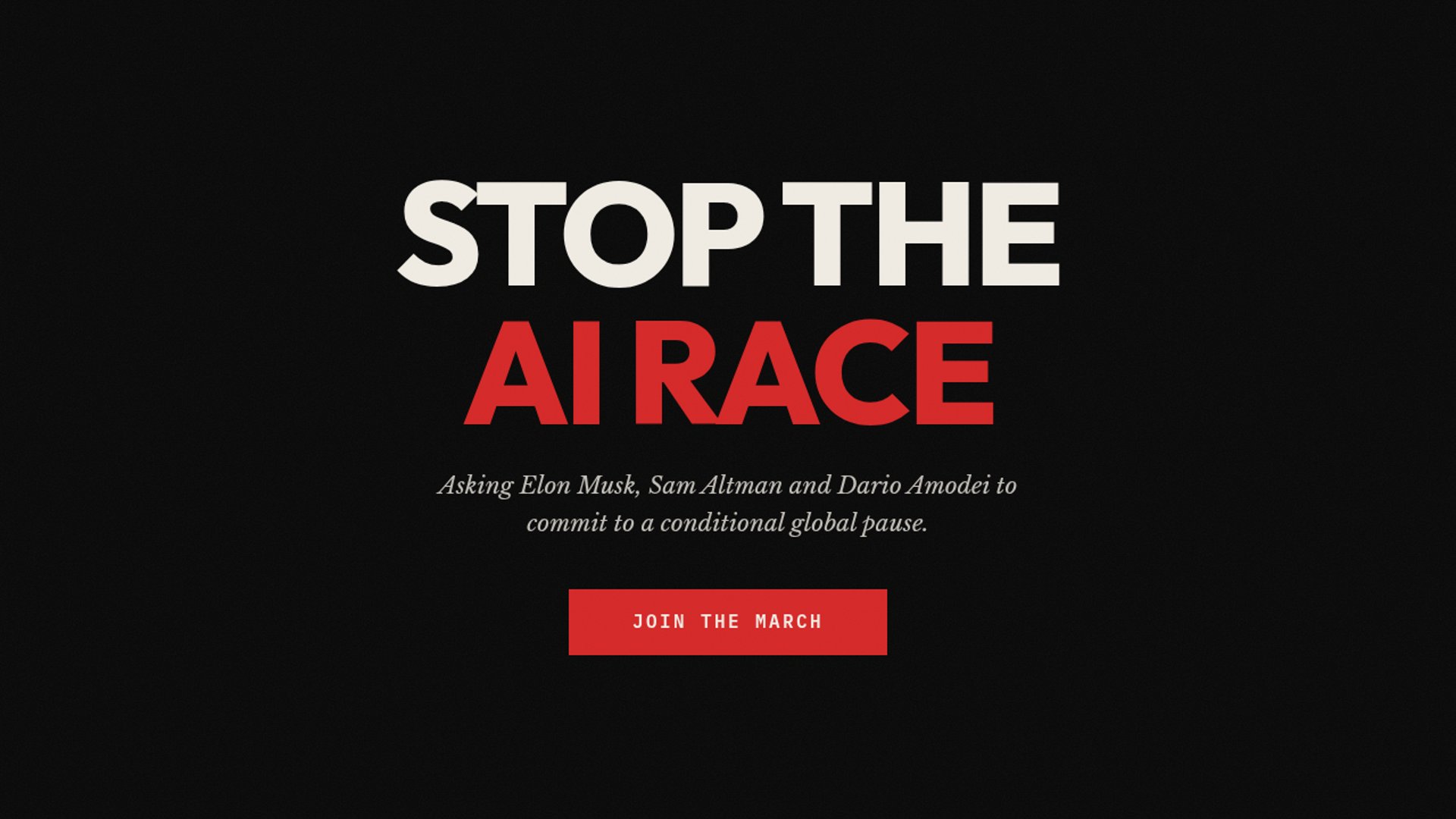 On March 21, 2026, Stop The AI Race led a San Francisco march from Anthropic to OpenAI to xAI, asking the CEOs of each lab to publicly commit to pausing frontier model development if every other major lab does the same. The campaign is trying to turn AI safety into a coordination problem the companies have to answer in public.