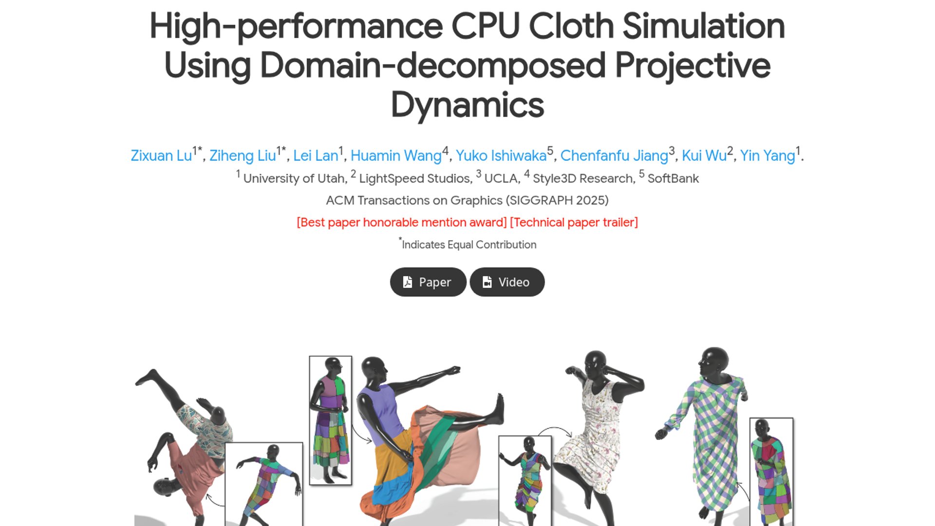 This SIGGRAPH 2025 (ACM TOG 44(4)) paper introduces a multicore CPU cloth simulator that partitions garments into domains and couples boundaries efficiently inside a projective-dynamics framework. The authors report at least an order-of-magnitude speedup over prior CPU methods, with performance that is often comparable to strong GPU cloth solvers on their showcased workloads.
