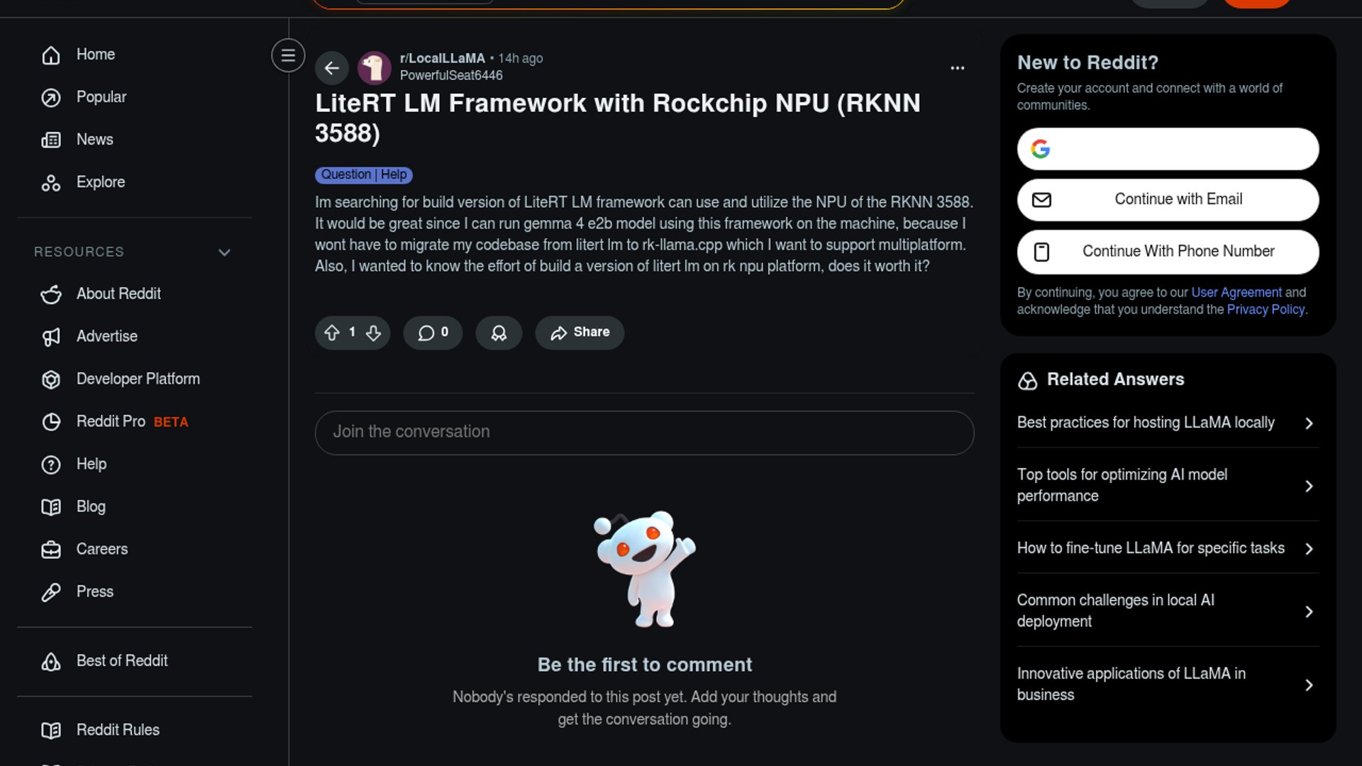 This Reddit post asks whether Google’s LiteRT-LM framework can be built to use the Rockchip RK3588 NPU, with Gemma 4 E2B as the target model, so the author can avoid moving a codebase to rk-llama.cpp. Current official LiteRT-LM docs show NPU support for Qualcomm AI Engine Direct and MediaTek NeuroPilot, but not Rockchip, which suggests there is no off-the-shelf RK3588 backend today. In practice, that makes this more of an upstream integration project than a simple build choice.