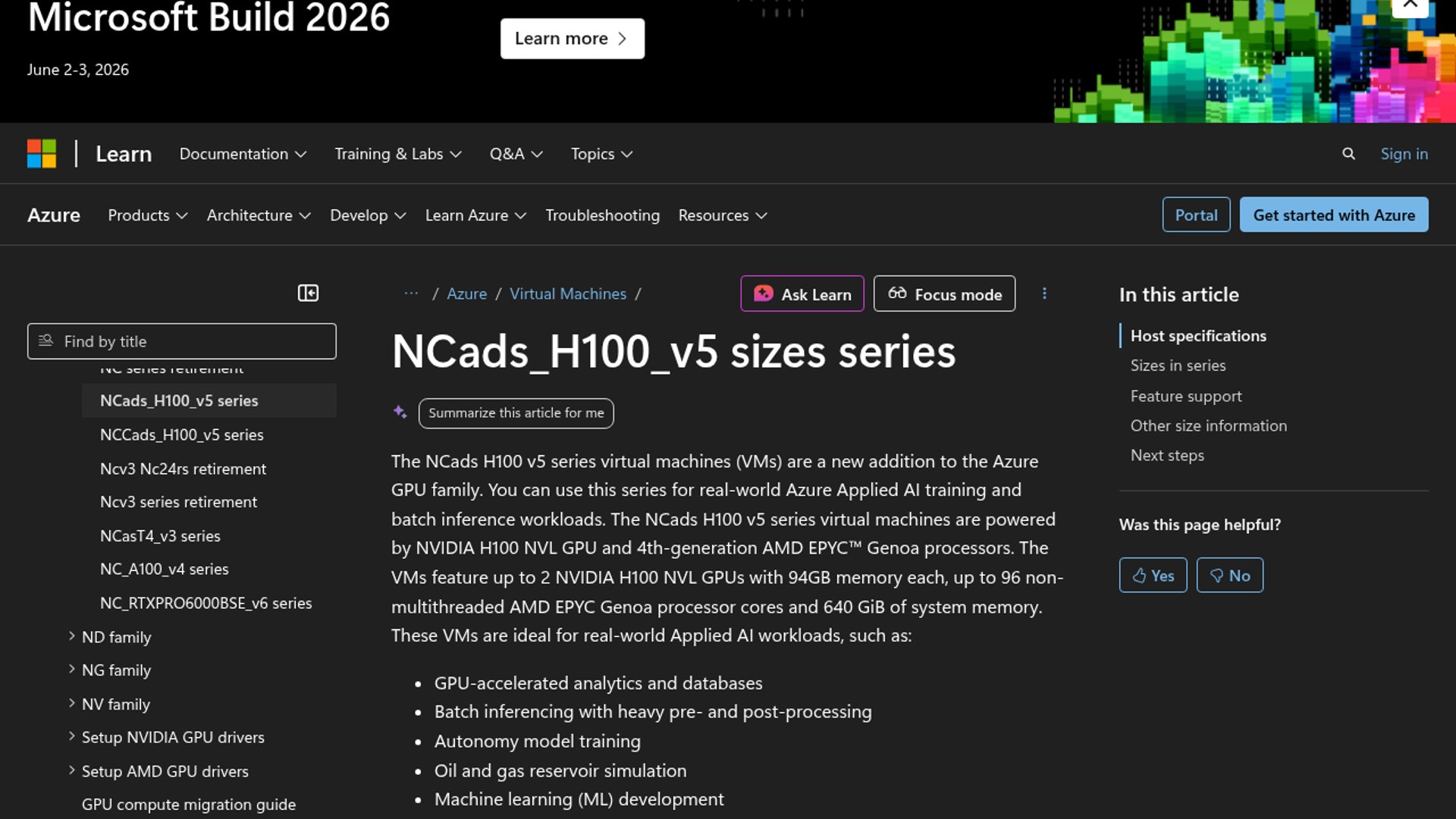 - –Microsoft's NCads H100 v5 docs position the series for applied AI training and batch inference, which fits the pitch well: https://learn.microsoft.com/en-us/azure/virtual-machines/sizes/gpu-accelerated/ncadsh100v5-series