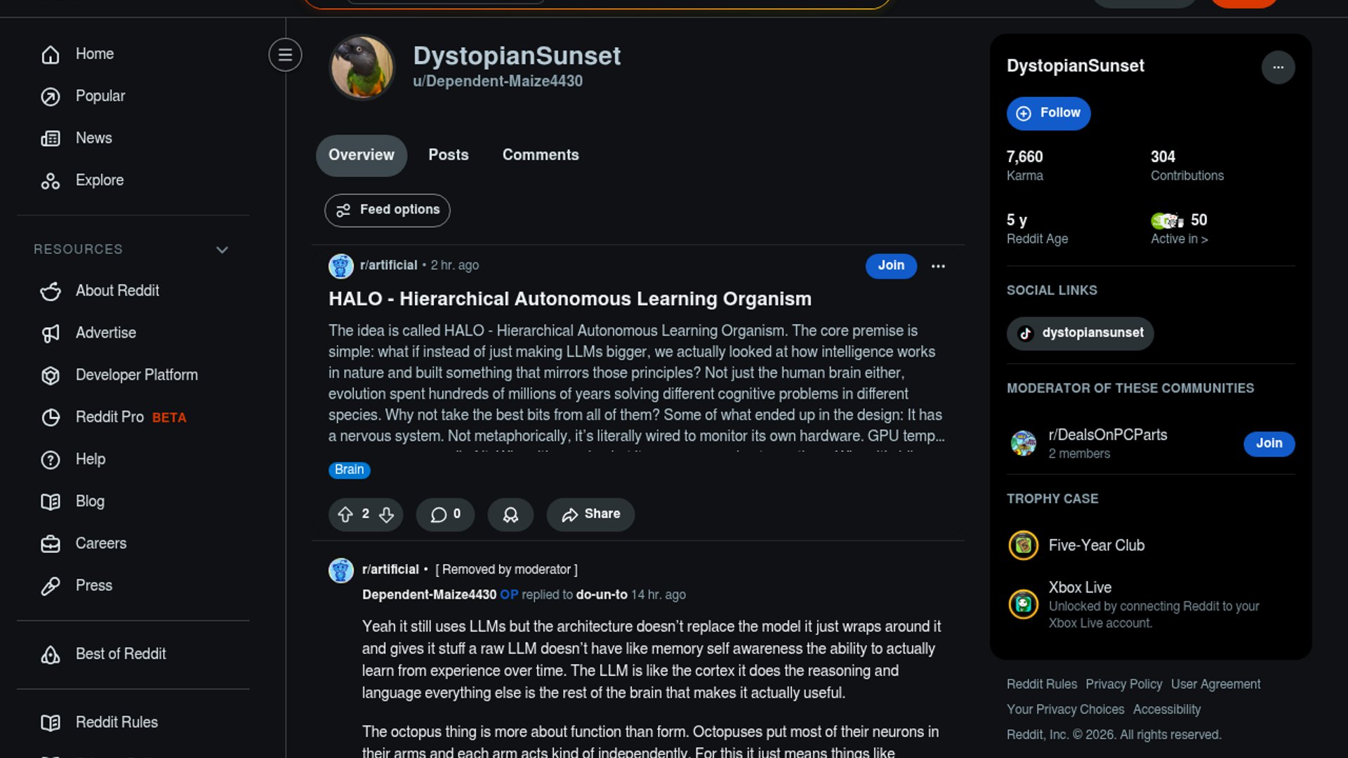 HALO is a proposed local-first AI architecture that borrows from biology, combining hardware telemetry, semi-autonomous processing arms, uncertainty tracking, and developmental memory into a continuously learning system. The post frames it as a technical white paper and open concept rather than a shipping product.