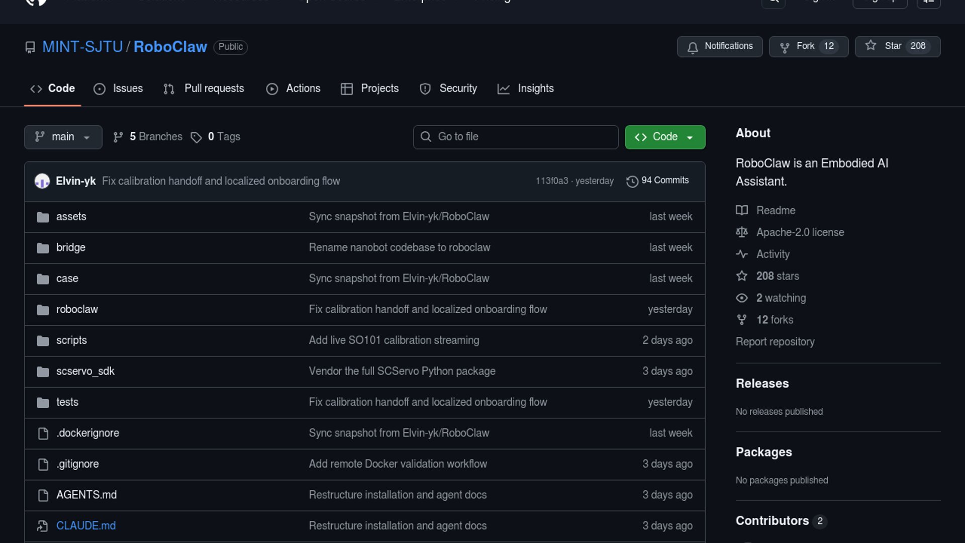 - –The repo frames RoboClaw as an open-source embodied intelligence assistant with a clear pipeline from language to execution.