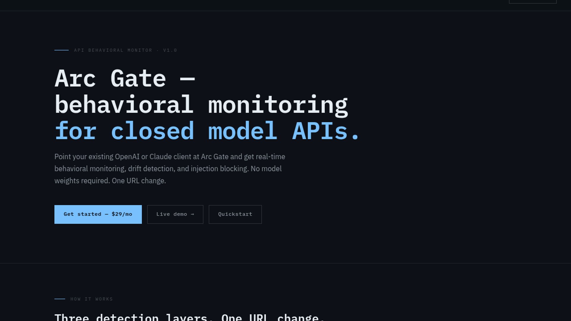 Arc Gate is a hosted proxy that sits between an app and OpenAI or Anthropic, adding phrase blocking, token-distribution monitoring, and a session-level stability score. The launch post frames that session tracking as the key differentiator for catching Crescendo-style, multi-turn prompt attacks that look harmless turn by turn.