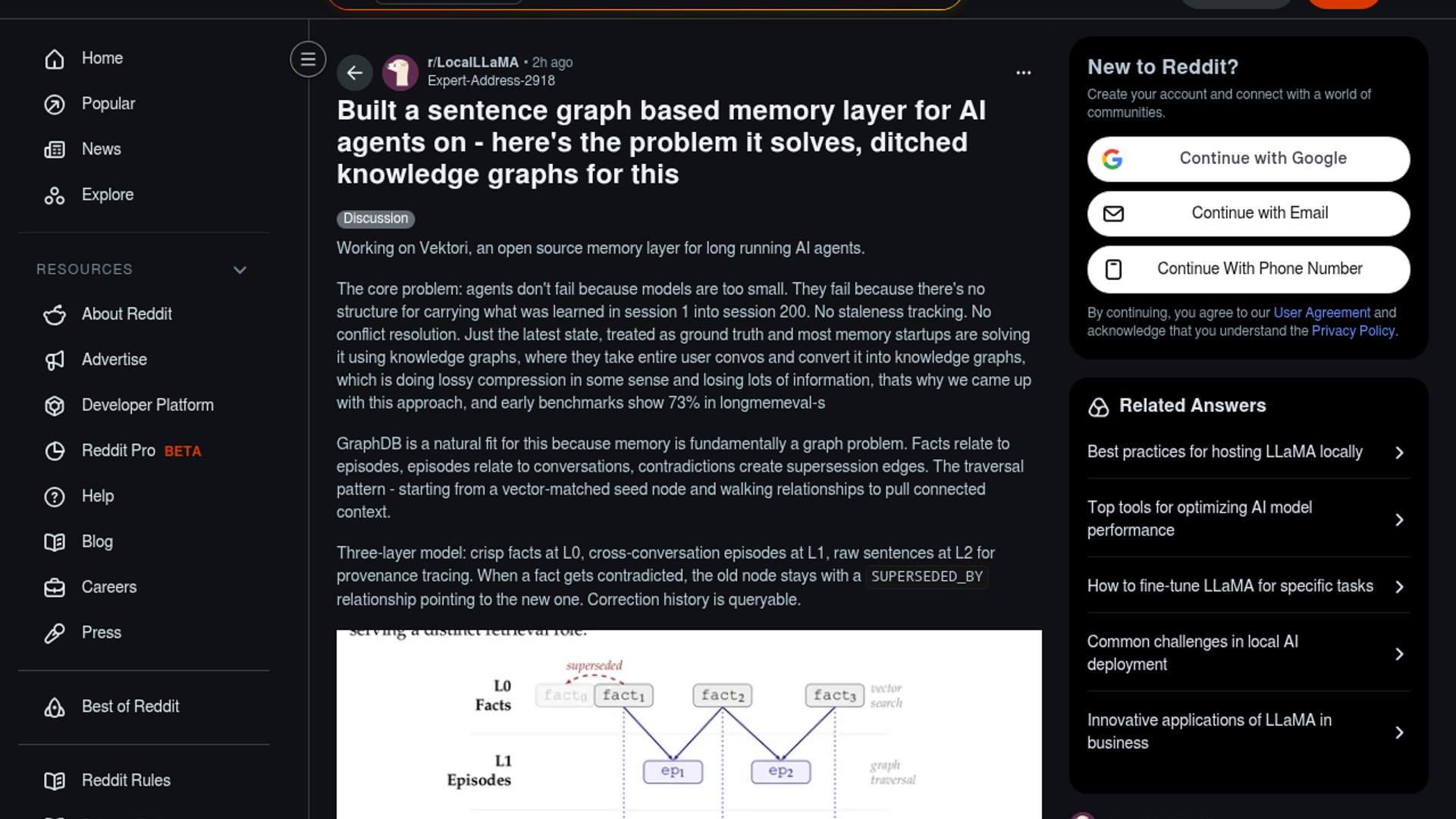 Vektori is an open-source memory layer for long-running AI agents that replaces lossy knowledge graph compression with a three-layer sentence graph. By structuring information into Facts (L0), Episodes (L1), and raw Sentences (L2), it enables agents to maintain provenance, track staleness, and resolve contradictions natively within a single Postgres or SQLite database.