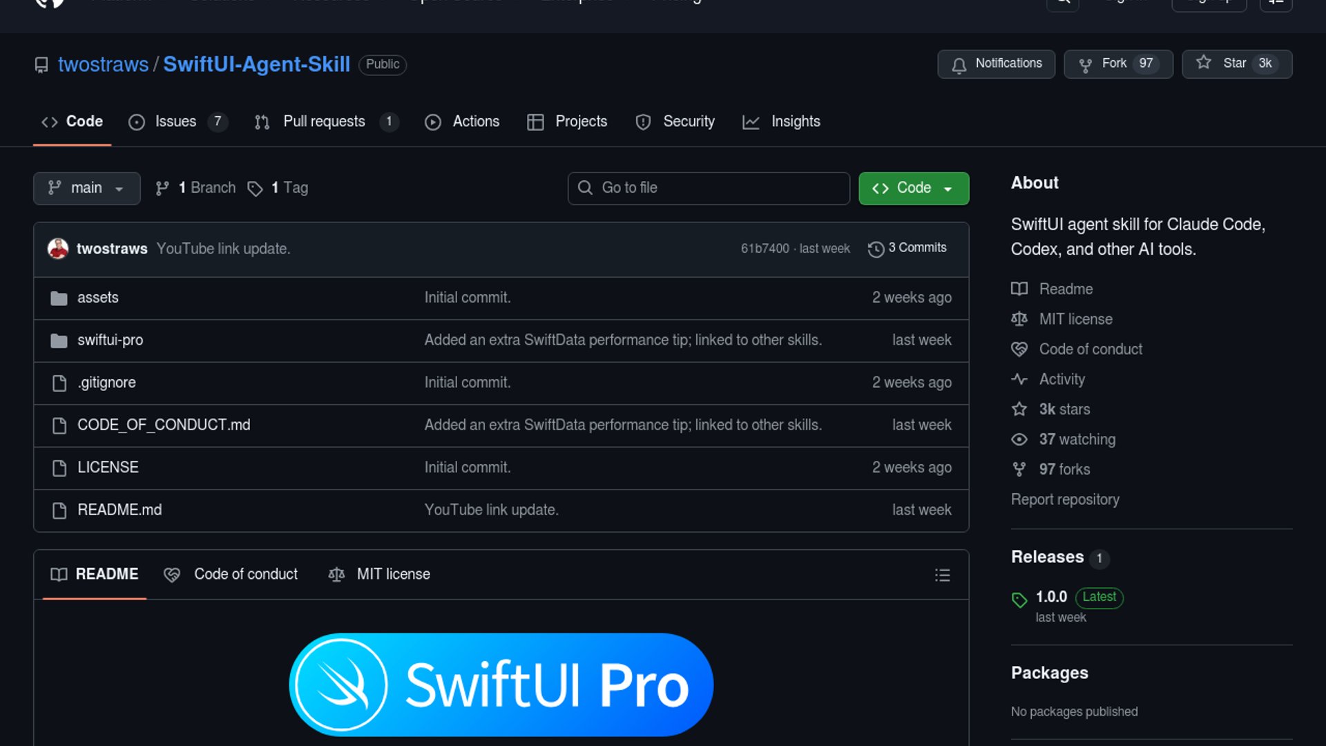 Paul Hudson’s SwiftUI Pro is a reusable skill for Claude Code, Codex, Gemini, Cursor, and other coding agents. It packages modern SwiftUI guidance on APIs, layout, accessibility, performance, and deprecations into a lightweight installable workflow helper.