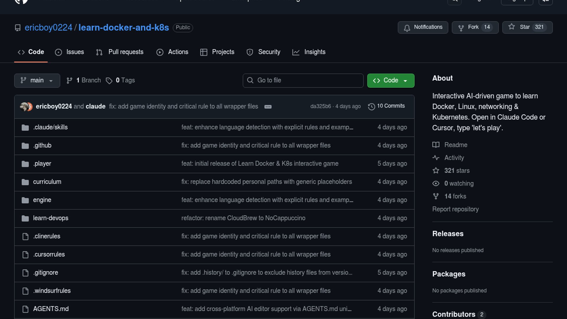 learn-docker-and-k8s is an open-source, AI-driven terminal game that teaches Docker, Linux, networking, and Kubernetes through staged scenarios. It is designed to run inside Claude Code, Cursor, and similar AI editors, with a simple “let’s play” prompt to start.