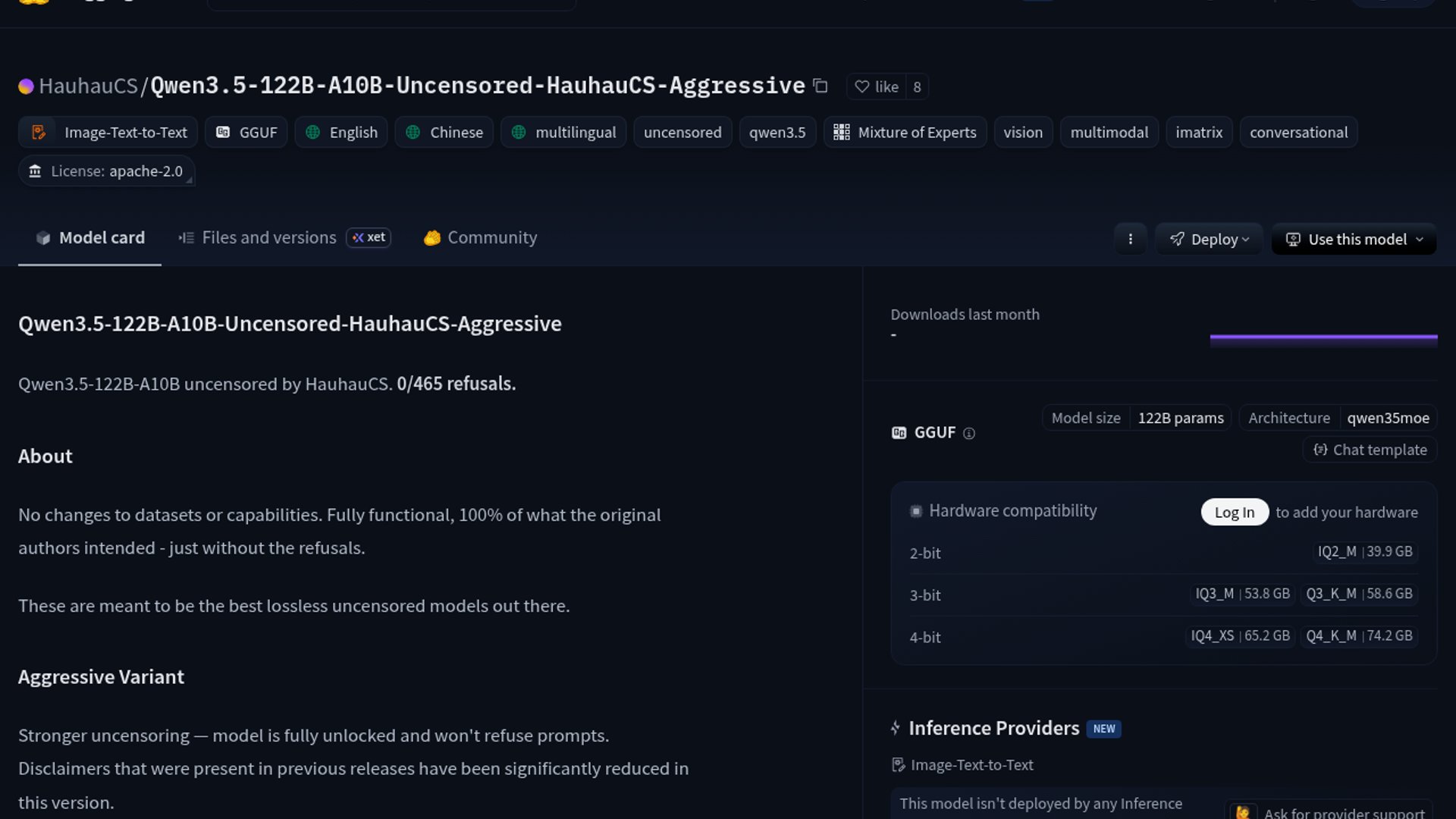 HauhauCS drops uncensored Qwen3.5-122B GGUF quants