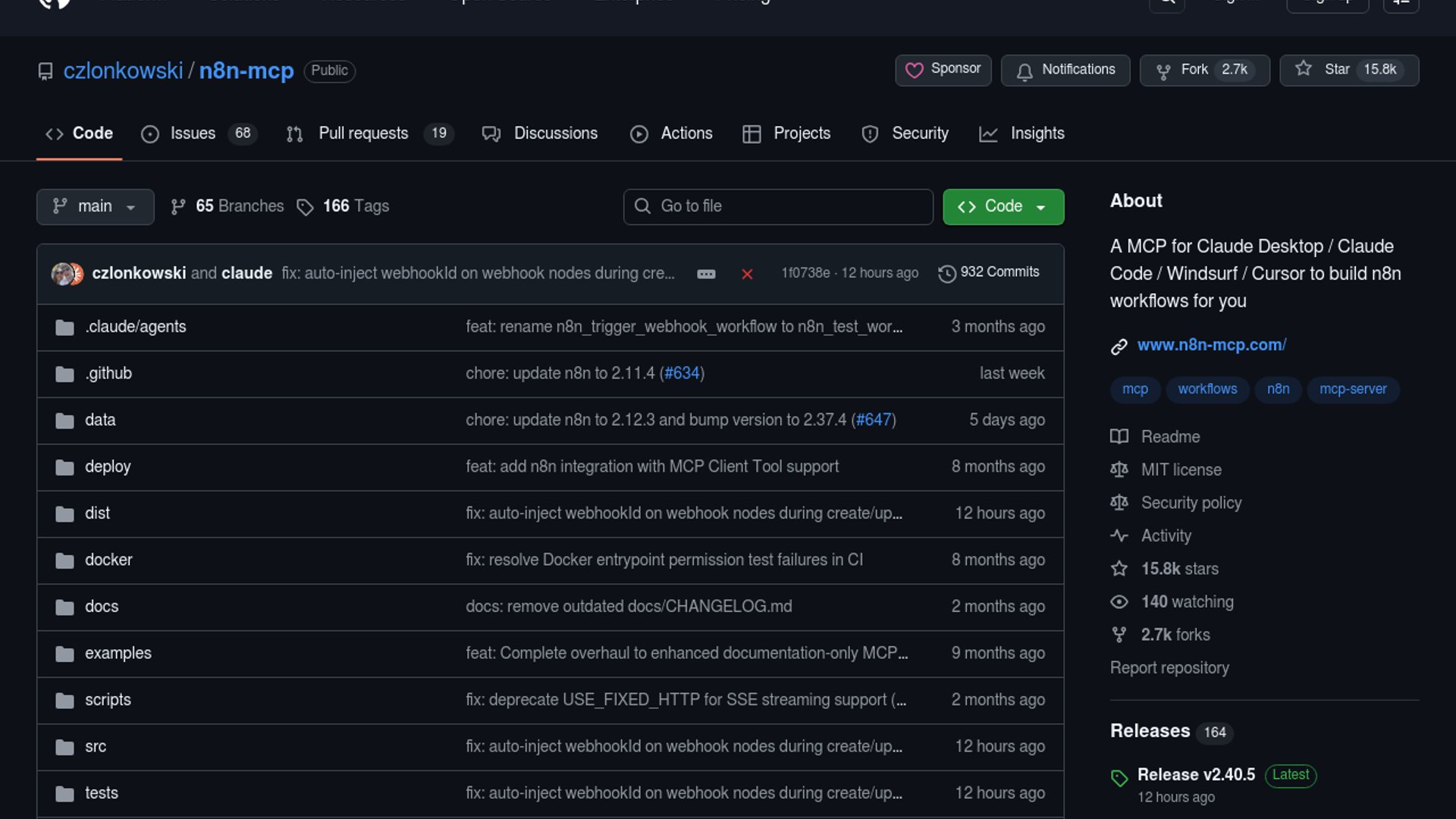 n8n-MCP is an MIT-licensed MCP server that gives Claude Desktop, Claude Code, Cursor, Windsurf, and other assistants structured access to n8n node docs, properties, validation, and workflow templates. It helps AI build and manage n8n workflows without guessing at schemas or hand-writing brittle JSON.