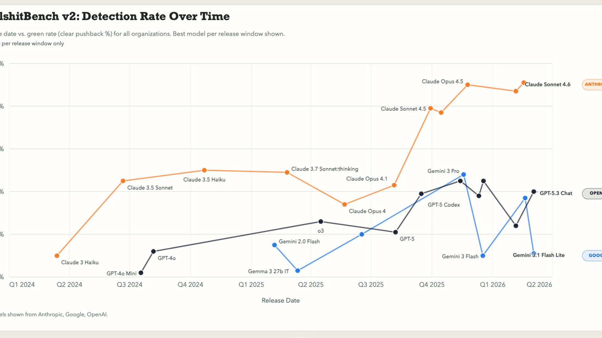 - –Anthropic's models remain the industry gold standard for resisting sycophancy, outperforming competitors in rejecting nonsensical technical questions.