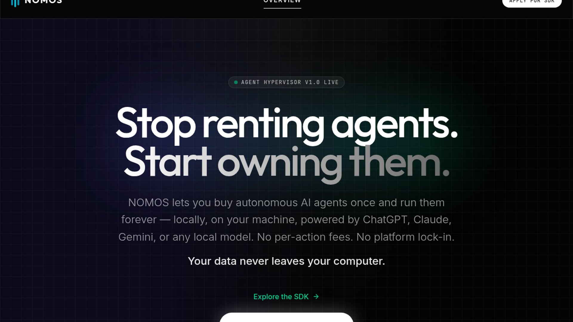 NOMOS is a local agent packaging SDK and desktop runtime aimed at non-technical users: package one file, detect hardware, install Ollama if needed, pick a model, and keep credentials on-device. The project is still private while its creator validates whether this shared-runtime approach is the right way to ship local agents without pushing them to the cloud.