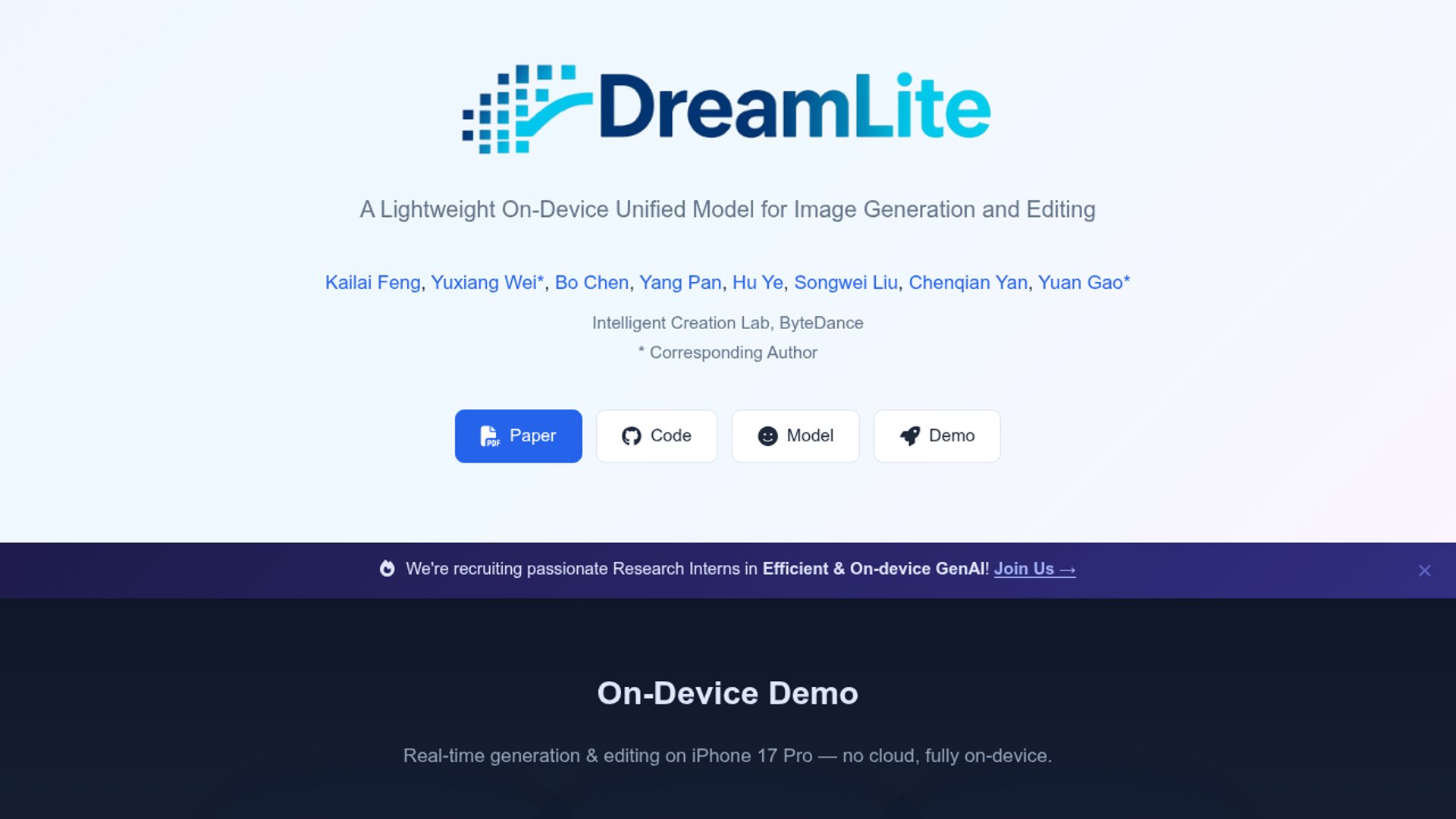 ByteDance researchers released DreamLite, a 0.39B parameter on-device diffusion model that unifies text-to-image generation and image editing in a single network. It can generate or edit 1024x1024 images in under five seconds on an iPhone 17 Pro without cloud connectivity.