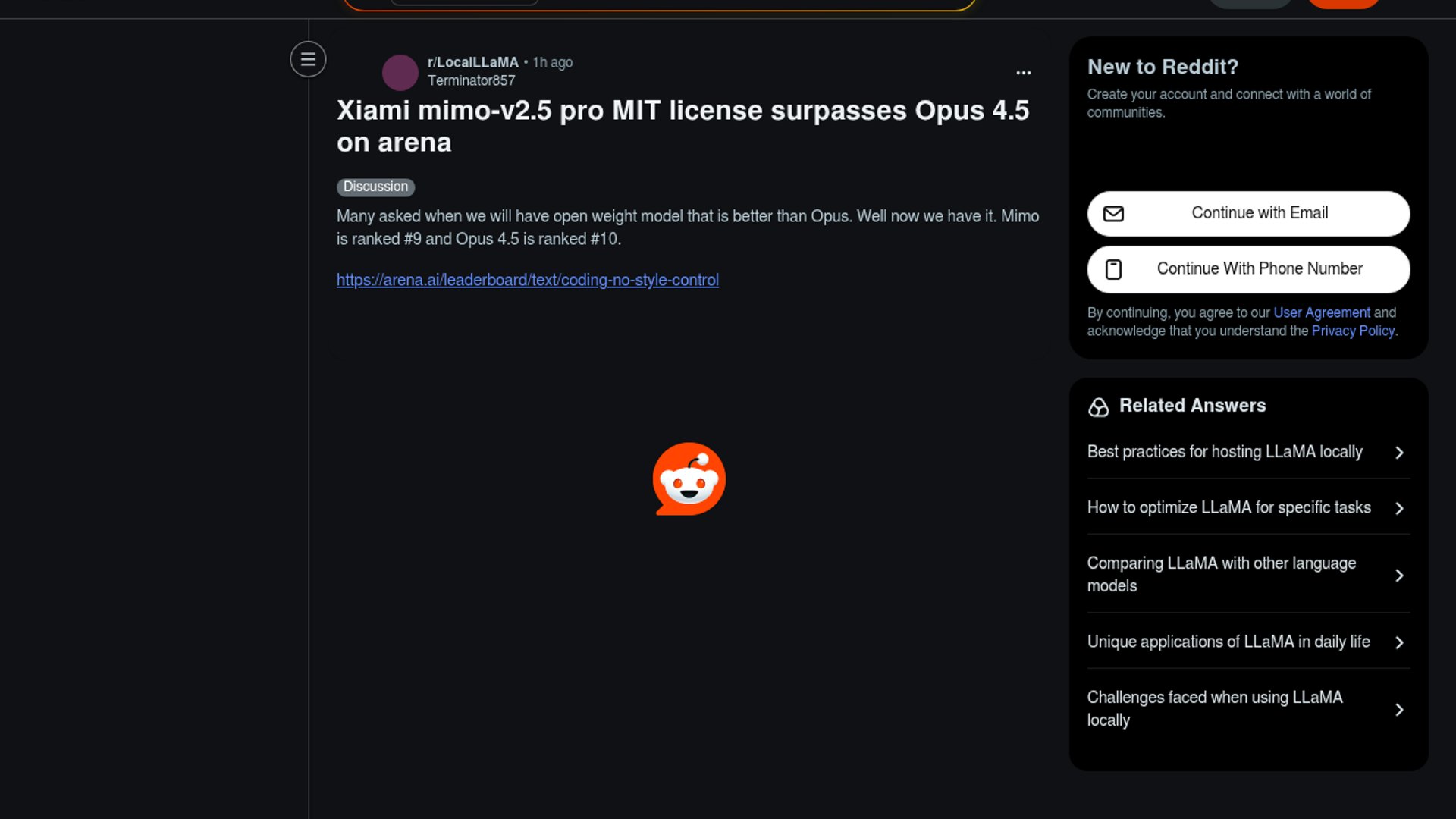 A Reddit post highlights Xiaomi’s MiMo-V2.5-Pro, an MIT-licensed model in the MiMo family, and claims it narrowly outranks Claude Opus 4.5 on Arena’s coding-no-style-control leaderboard. The practical takeaway is that Xiaomi now appears to have an open model in frontier-code territory, but the margin is thin enough that this should be read as an encouraging benchmark signal rather than a settled verdict.