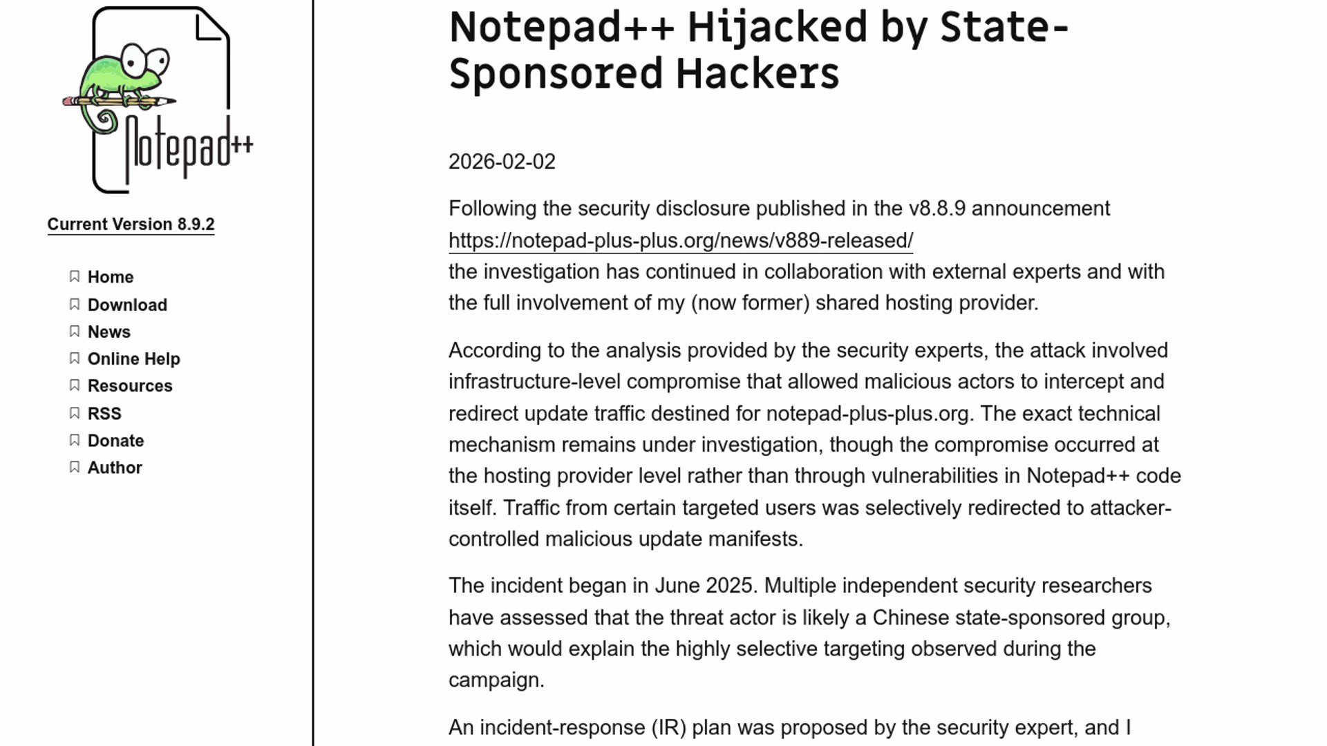- –The incident centered on WinGUp and update traffic integrity, not a broad compromise of every Notepad++ binary