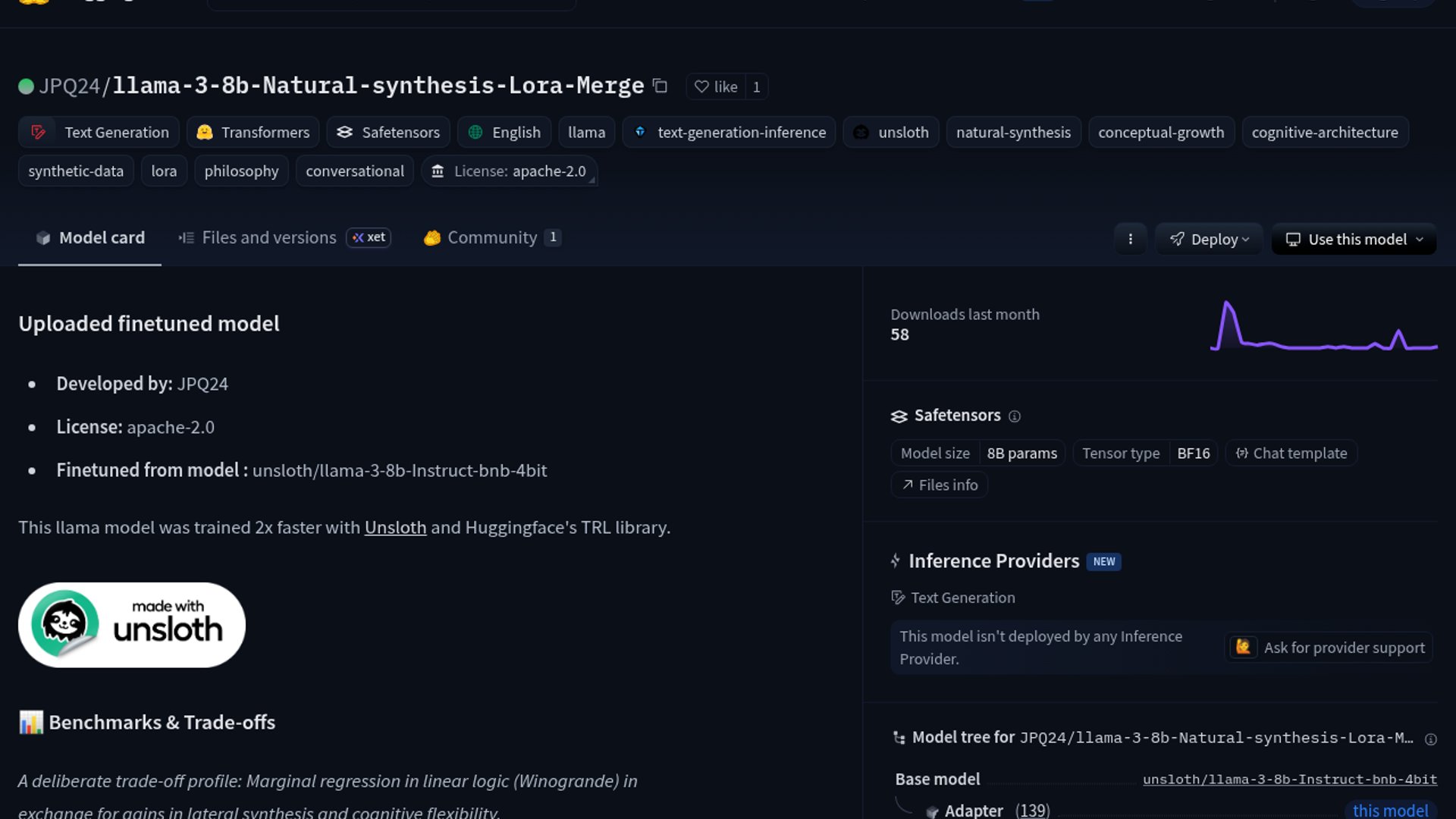 This is a neat proof-of-concept for procedural biasing, but not yet proof that “System 2” got baked into the weights; it looks more like a strong response scaffold with a distinctive rhetorical macro. The Hugging Face model card (https://huggingface.co/JPQ24/llama-3-8b-Natural-synthesis-Lora-Merge) and Reddit demo (https://www.reddit.com/r/LocalLLaMA/comments/1ry989g/interesting_sidebyside_llama38b_vs_an/) make the claim concrete, but they also show how much the prompt format matters.