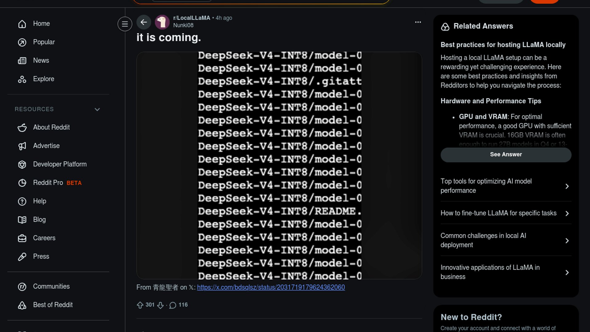 A Reddit post on LocalLLaMA is amplifying an X teaser widely read as an early signal that DeepSeek V4 is close. Follow-on chatter around the same account points to possible vision and audio support, but DeepSeek’s official site still fronts V3.2 and has not posted a formal V4 announcement.