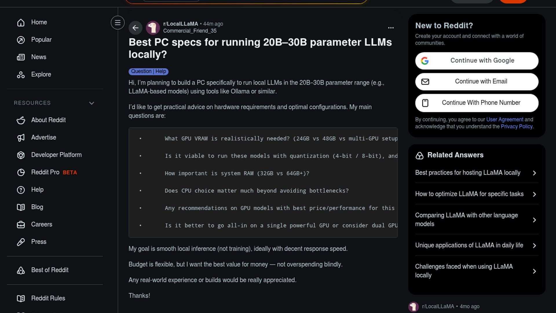 - –24GB (RTX 3090/4090) remains the minimum floor for 30B models at 4-bit quantization, though memory bandwidth limitations are becoming more apparent compared to GDDR7.