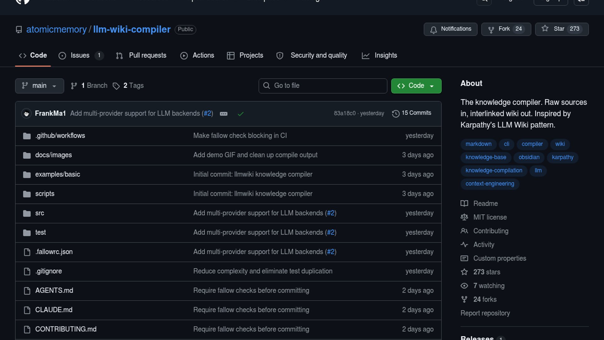 - –`llm-wiki-compiler` looks like a solid open-source reference implementation, not a mature commercial product.
