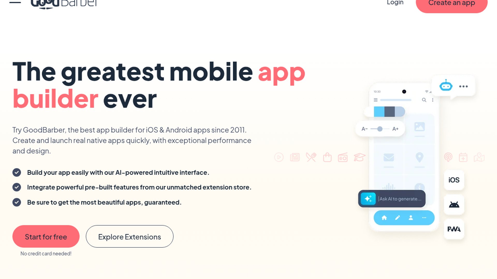 This video showcases GoodBarber as a no-code platform for building and publishing iOS, Android, and PWA apps from a single workflow. It emphasizes AI-assisted creation features that help creators ship mobile apps faster without writing code.