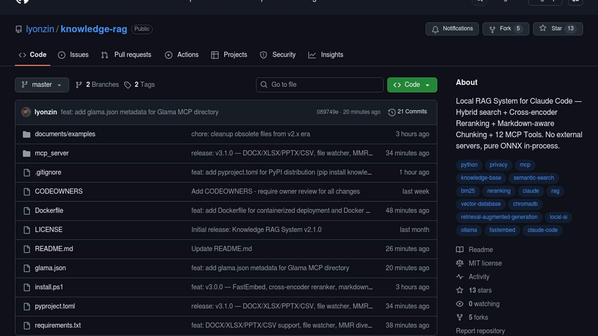 - –The MCP toolset makes this more than a search library. It starts to look like a persistent knowledge layer for Claude Code, which is a more compelling use case than “yet another local RAG demo.”