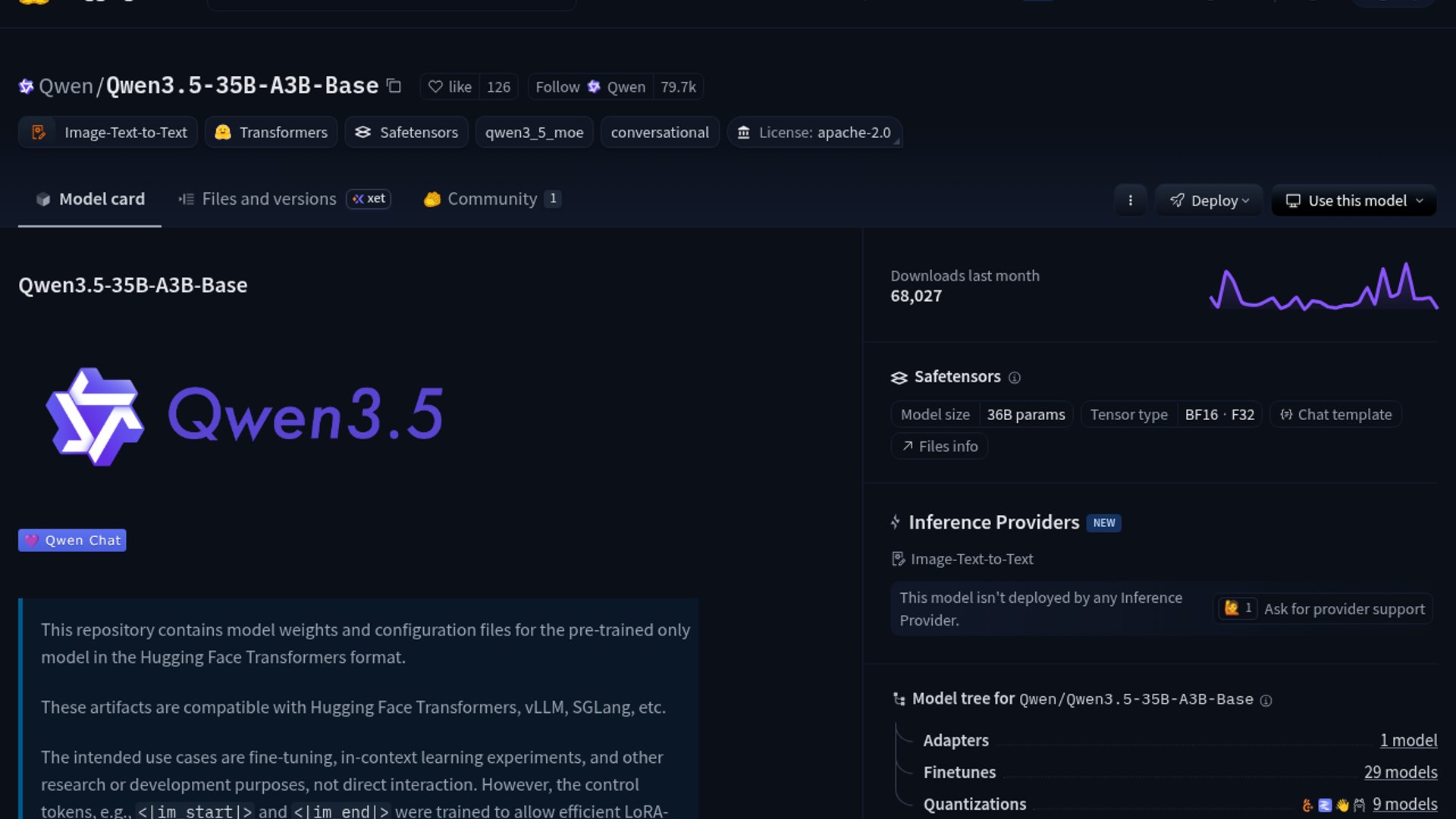 The mradermacher GGUF quantization of Qwen3.5-35B-A3B-Base shows that Qwen's pre-trained MoE checkpoint can be pushed into useful instruction-style and chain-of-thought behavior with the right prompt. It is still a base model, not a true instruct release, but it gives local users a more flexible target for experimentation, LoRA work, and offline inference.